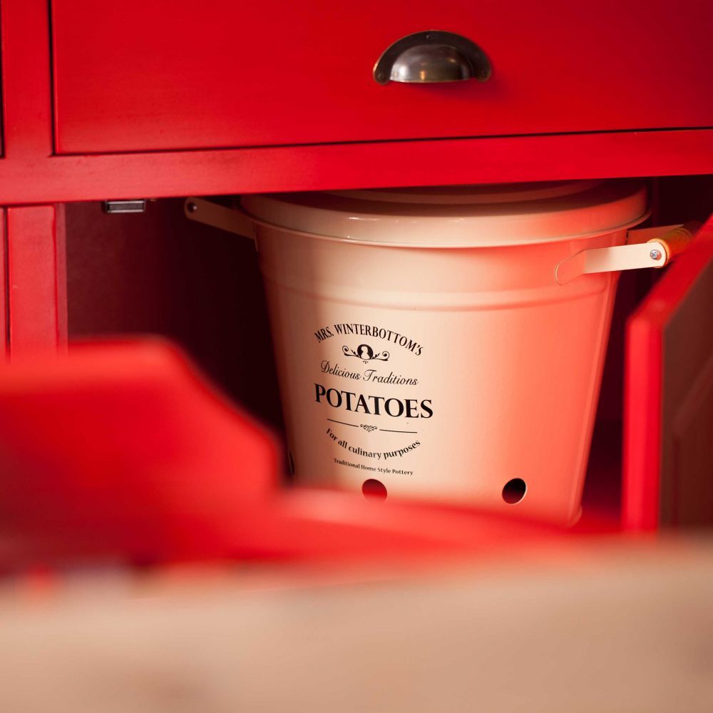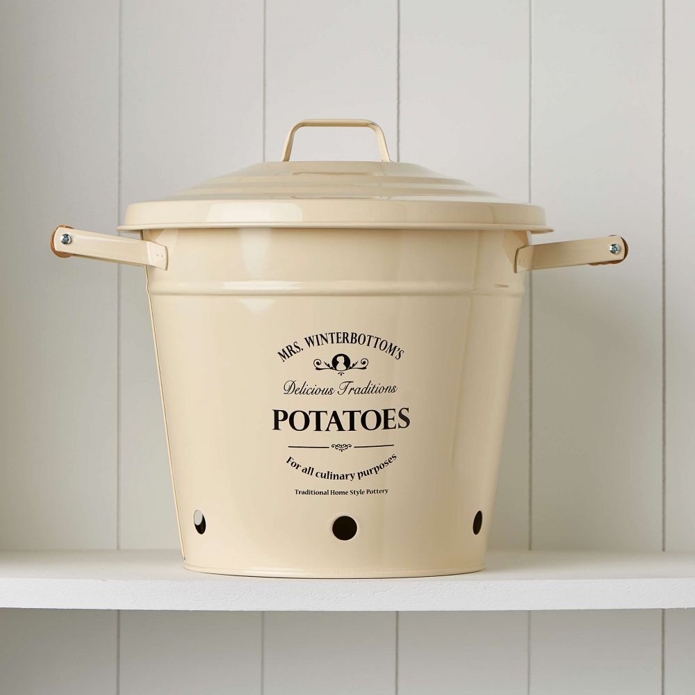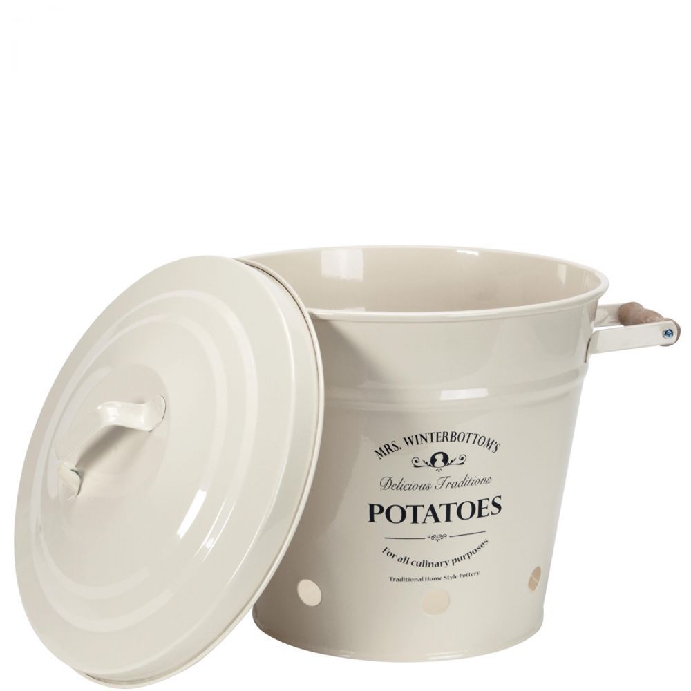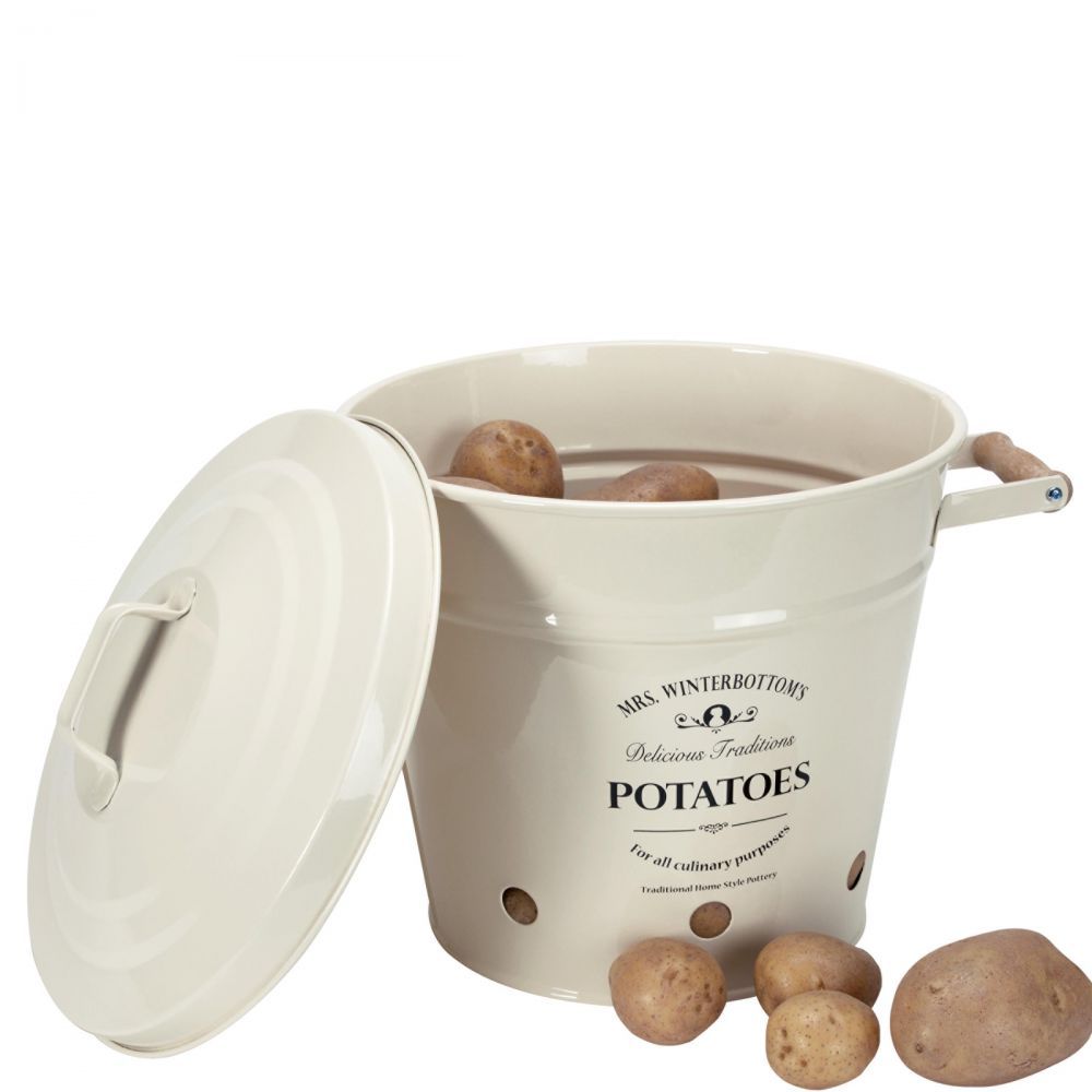 Πού είναι το καλύτερο μέρος για να αποθηκεύσετε τις πατάτες σας; Ένας κάδος πατάτας έχει την εξελιγμένη μορφή κάδου από ψευδάργυρο με ξύλινες λαβές, καπάκι και τρύπες για αέρα στη βάση - και βεβαίως είναι πιστοποιημένο για να διατηρεί ασφαλή τα τρόφιμα. Η σειρά MRS. WINTERBOTTOM'S έχει όλα τα αξεσουάρ κουζίνας που θα χρειαστείτε. Μπορείτε να αποθηκεύσετε ή και να σερβίρετε σε αυτά τα παραδοσιακά βάζα, μπουκάλια, μπολ, πιάτα, κανάτες κλπ.