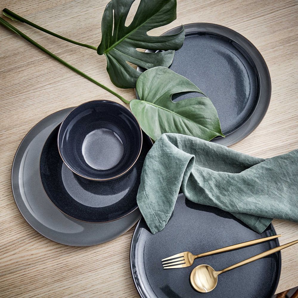 Με τη σειρά επιτραπέζιων σκευών Native με τον μοντέρνο μινιμαλιστικό σχεδιασμό, μια νέα τάση έρχεται στο τραπέζι! Το πιάτο πρωινού σε σκούρο μπλε χρώμα είναι χειροποίητο στην Πορτογαλία και έχειλεπτή κατασκευή υψηλής ποιότητας με καθαρό σχεδιασμό. Λόγω της επιγυάλωσης με μικρά κρύσταλλα, κάθε μέρος της σειράς είναι πραγματικά μοναδικό. Με βάση ακατέργαστη, η οποία αποκαλύπτει την πρώτη ύλη, εξασφαλίζει μια τέλεια εμφάνιση. Κάθε μέρος της σειράς είναι ασφαλές για πλυντήριο πιάτων και φούρνο μικροκυμάτων.