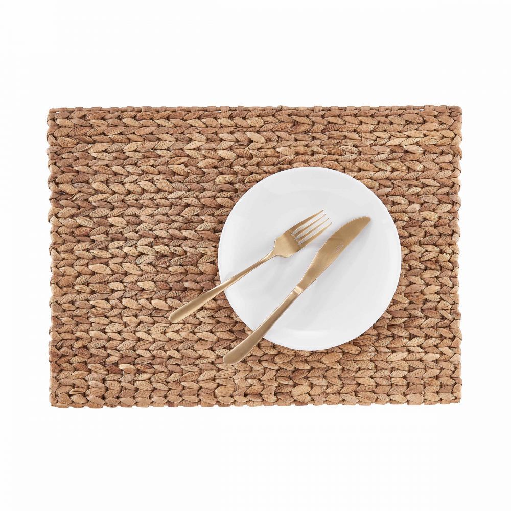 Με το φυσικό σουπλά Twist από υάκινθο και μέταλλο, καλύπτετε το λευκό ξύλινο τραπέζι ή το τραπέζι του κήπου σας για να απολαύσετε ένα ελαφρύ γεύμα ή να απολαύσετε ένα απλό δείπνο.