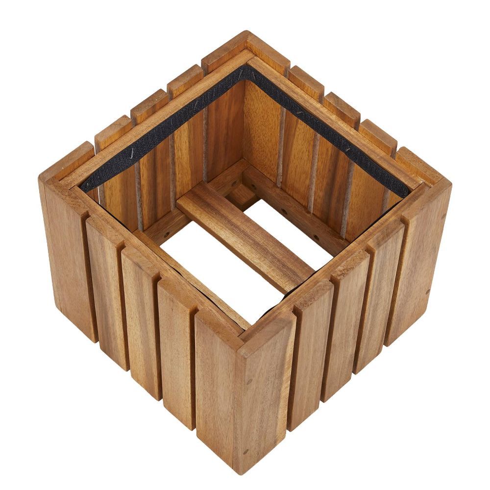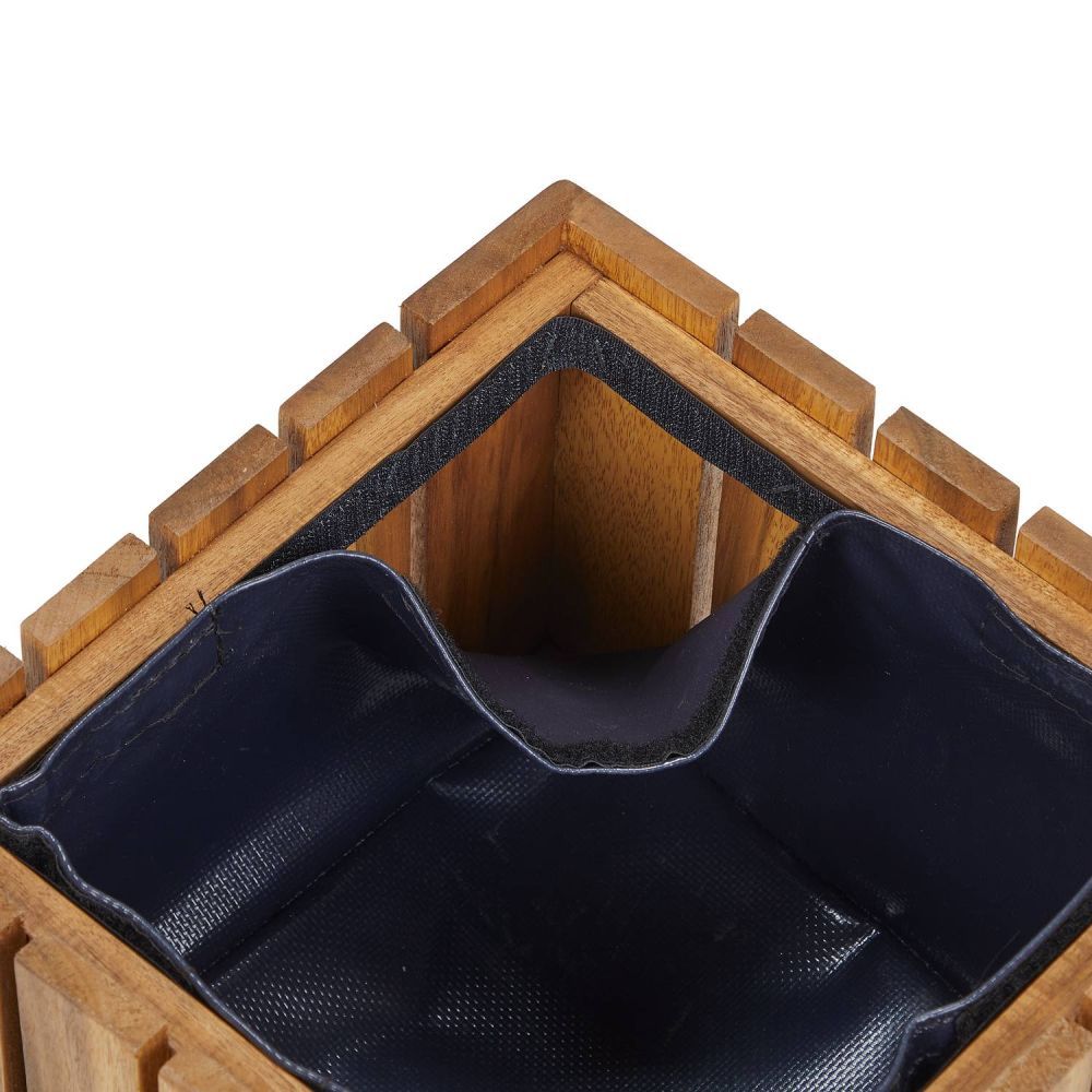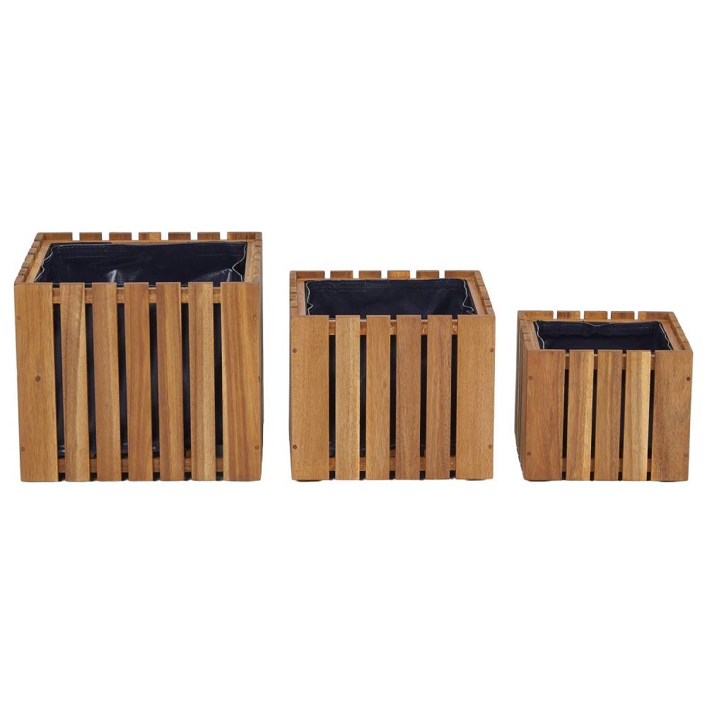 Κατασκευασμένο από φυσικό ξύλο ακακίας στο εξωτερικό και με πτυσσόμενη επένδυση από μουσαμά στο εσωτερικό, το σετ γλάστρων 3 τεμαχίων NEW GARDENING είναι έτοιμο για τα πράσινα και ανθοφόρα φυτά σας. Με τον μοντέρνο σχεδιασμό τους, αυτές οι τετράγωνες γλάστρες κασπό, ταιριάζουν απόλυτα σε σύγχρονους εσωτερικούς χώρους, καθώς και στο μπαλκόνι ή την βεράντα σας, όπου μπορείτε να δημιουργήσετε μια πιο όμορφη και φιλόξενη ατμόσφαιρα με πλούσια φυτά.