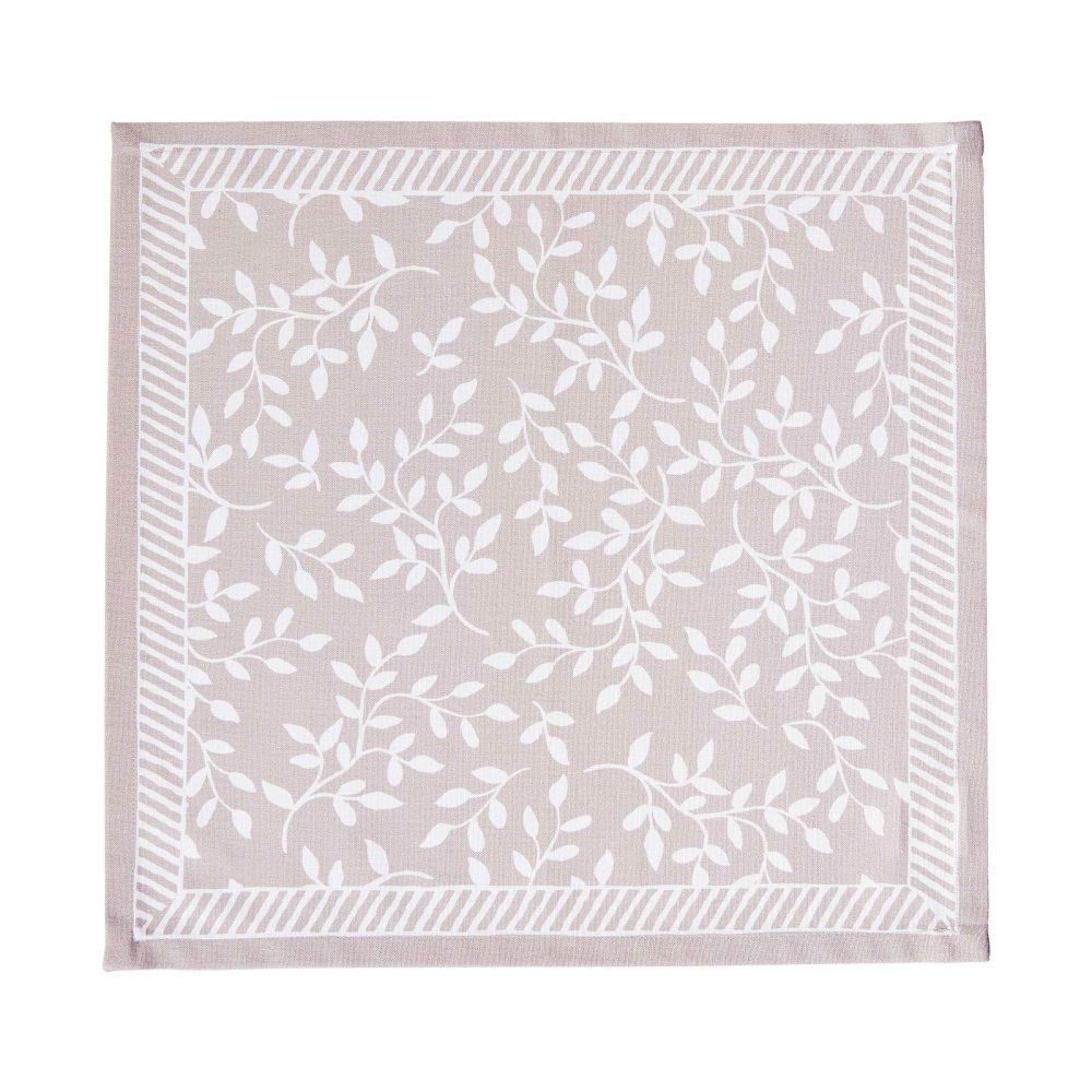 Με το γοητευτικό της σχέδιο, η πετσέτα OLIVIA 42 x 42 cm από βαμβάκι επιτυγχάνει ακριβώς τη σωστή ισορροπία μεταξύ ουδέτερου μονόχρωμου και τολμηρού μοτίβου με το γοητευτικό της σχέδιο. Λεπτά φύλλα, γεωμετρικές γραμμές και μια απαλή απόχρωση γίνονται η κομψή αλλά και διακριτική βάση ενός χαλαρού τραπεζιού για κάθε μέρα. Ιδανική σε συνδυασμό με λευκούς και λεπτούς φυσικούς τόνους. Η πετσέτα συνδυάζεται με ταιριαστά τραπεζομάντηλα και runner.