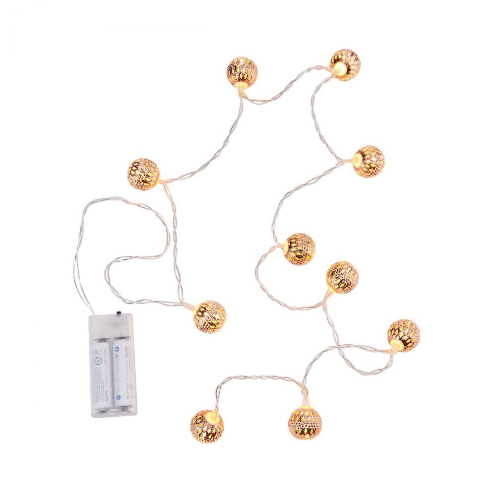 ORIENTAL LIGHTS - LED αλυσίδα φωτισμού με μεταλλικές λάμπες και καλώδιο USB, χάλκινο