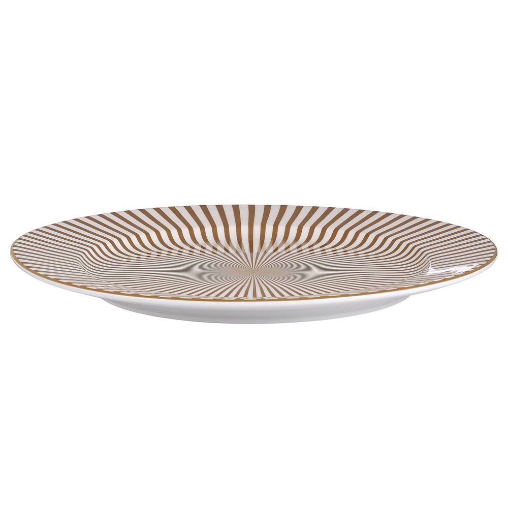 Ένα στρωμένο τραπέζι μετατρέπεται σε εορταστικό σκηνικό με κομψά αξεσουάρ όπως το πιάτο σερβιρίσματος PALACE σε λευκό και χρυσό. Αυτό το πιάτο σερβιρίσματος από πορσελάνη με περίτεχνα σχέδια μπορεί να συνδυαστεί με χρυσά μαχαιροπίρουνα, κηροπήγια, αξεσουάρ τραπεζιού και βάζα για ένα αρμονικό σύνολο.