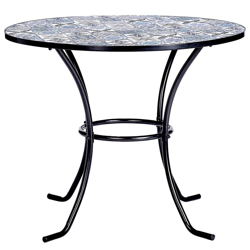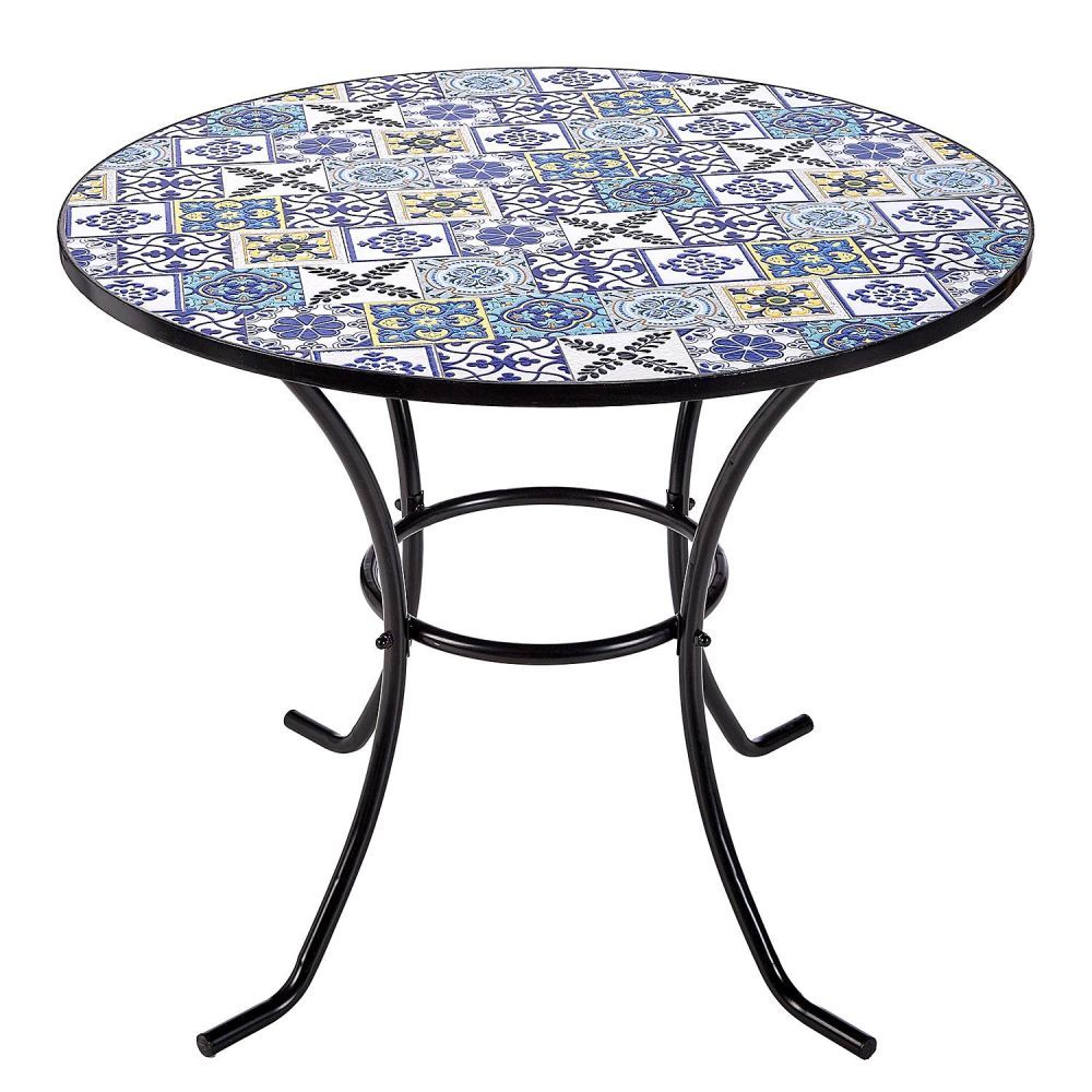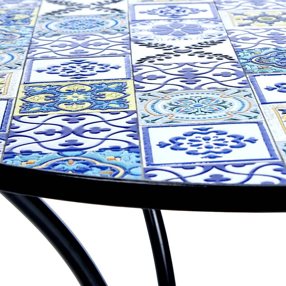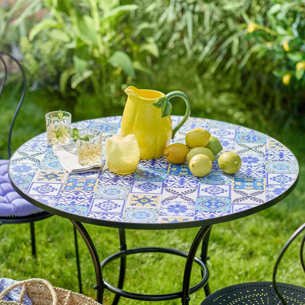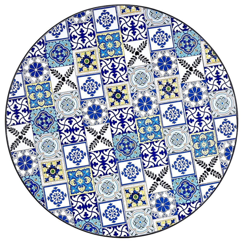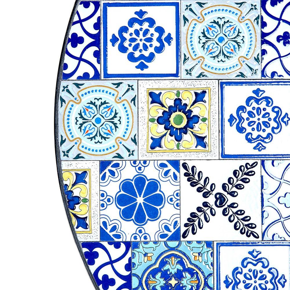 Τα Azulejos είναι δημοφιλή ισπανικά πλακάκια, καλλιτεχνικά διακοσμημένα υπό την επίδραση της μαυριτανικής κουλτούρας. Αυτό το όμορφο στυλ, με πολύχρωμα κεραμικά πλακίδια σε διάφορα σχέδια, αποτυπώνεται και στο στρογγυλό τραπέζι κήπου PALAZZO . Το πλαίσιο του τραπεζιού είναι κατασκευασμένο από σίδερο και τέσσερα πόδια εξασφαλίζουν τη σταθερότητά του. Μπορείτε να συνδυάσετε αυτό το κομψό τραπέζι με ξύλινες καρέκλες, ψάθινες πολυθρόνες ή μοντέρνα έπιπλα κήπου για να δημιουργήσετε τον δικό σας ζεστό χώρο στον ήλιο. Διατίθεται επίσης ένα ασορτί τραπέζι μπιστρό.