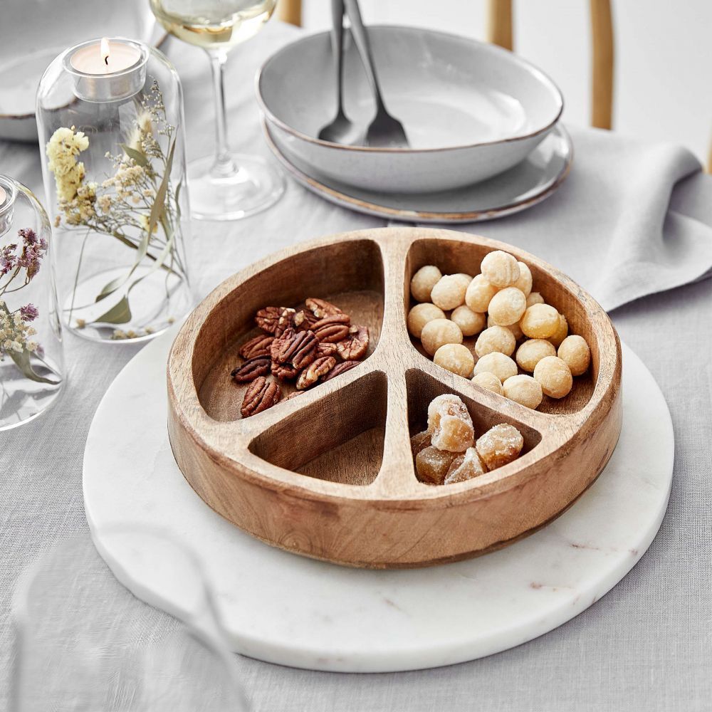 PEACE - πιατέλα 4 θέσεων για σνακ, από ξύλο μάνγκο, Δ22cm