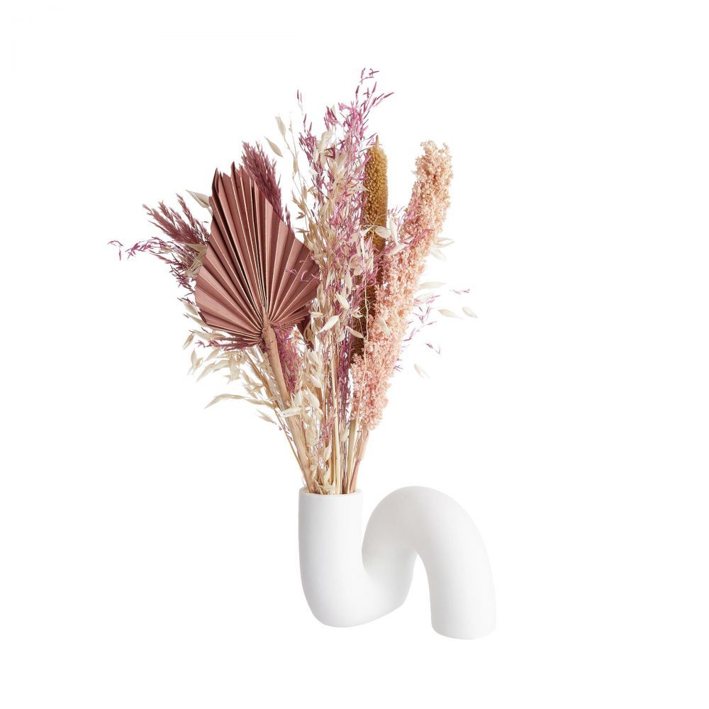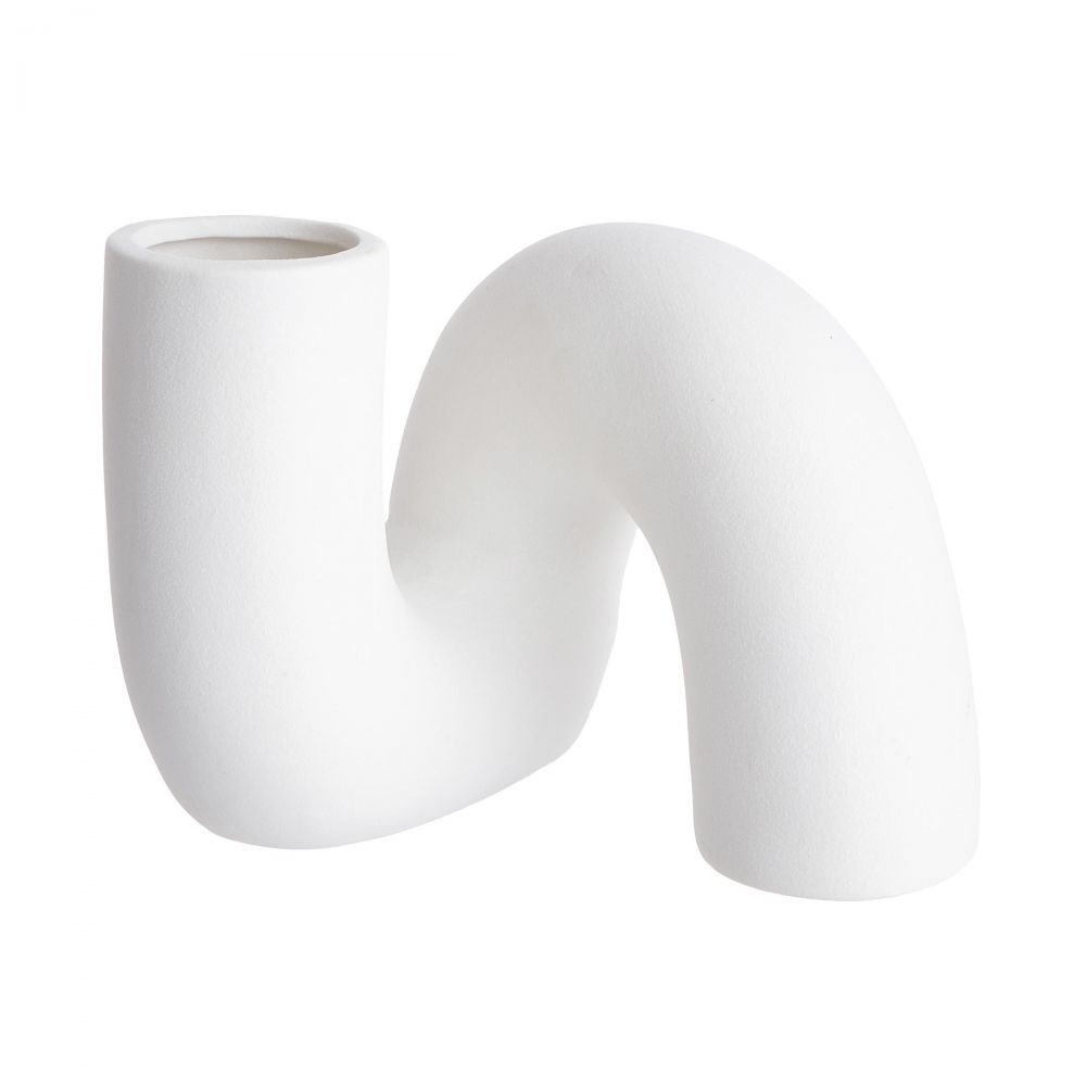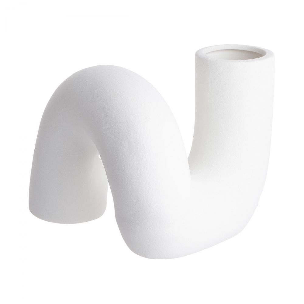 Στην αναζήτηση μιας όμορφης διακοσμητικής σύνθεσης ο δρόμος σας οδηγεί στο βάζο PIPE από λευκό πηλό. Οι καμπύλες και τα τόξα είναι αυτά που ολοκληρώνουν το πρωτότυπο σχέδιο. Το μοντέρνο βάζο μπορεί να συνδυαστεί με μεμονωμένα άνθη, κλαδιά ή με αποξηραμένα λουλούδια.Μπορεί να ομορφύνει διάφορα σημεία του σπιτιού όπως ένα τραπέζι ή μια συρταριέρα.