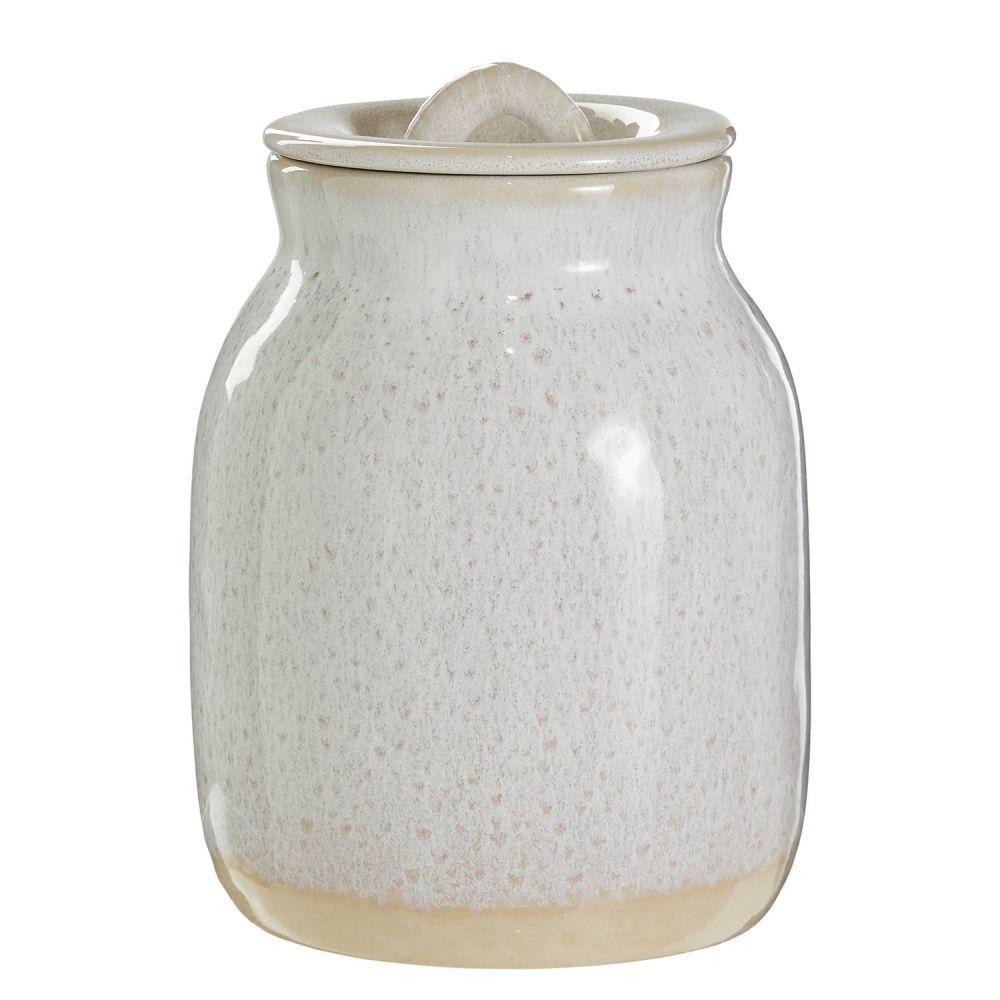 Το κεραμικό δοχείο αποθήκευσης με καπάκι PORTIMAO σε μπεζ χρώμα, συμπληρώνει τέλεια ένα μοντέρνο, ρουστίκ στυλ κι είναι ιδανικό για να σερβίρετε ή να αποθηκεύετε αλάτι ή ζάχαρη, για παράδειγμα. Ως αξεσουάρ τραπεζιού, φέρνει μία χαλαρή, σπιτική αίσθηση και μία μεσογειακή πινελιά στο τραπέζι σας. Το αντιδραστικό σμάλτο με το πιτσιλωτό εφέ κάνει κάθε κομμάτι μοναδικό. Διατίθεται σε δύο χρώματα.