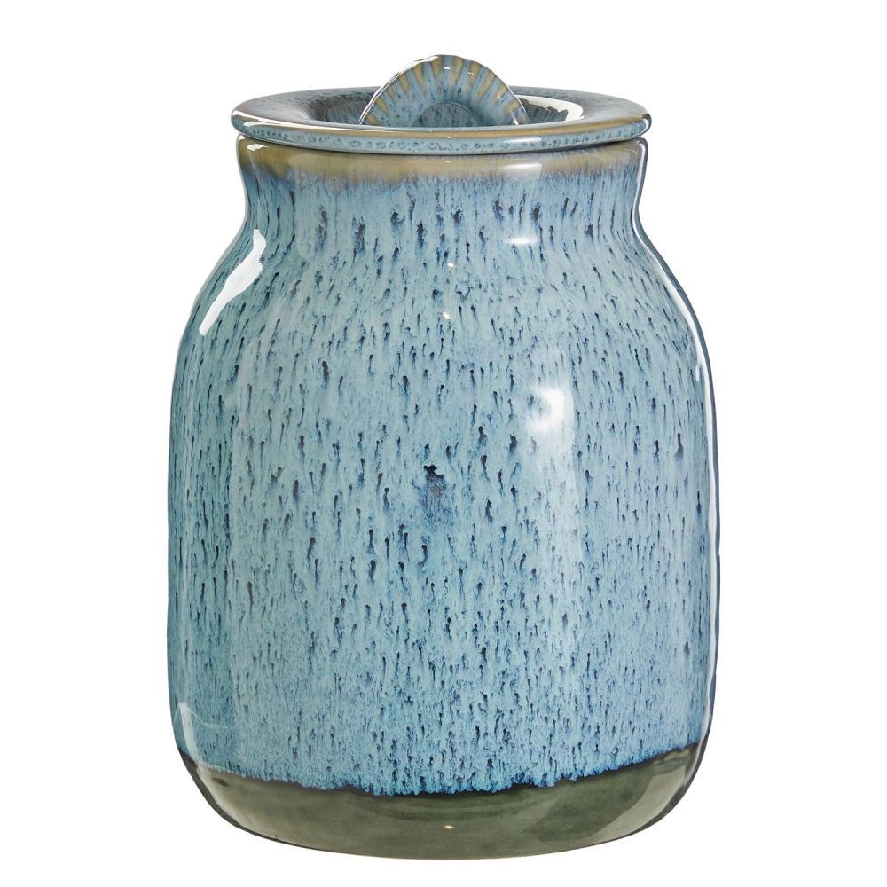 Το κεραμικό δοχείο αποθήκευσης με καπάκι PORTIMAO σε μπλε χρώμα, συμπληρώνει τέλεια ένα μοντέρνο, ρουστίκ στυλ κι είναι ιδανικό για να σερβίρετε ή να αποθηκεύετε αλάτι ή ζάχαρη, για παράδειγμα. Ως αξεσουάρ τραπεζιού, φέρνει μία χαλαρή, σπιτική αίσθηση και μία μεσογειακή πινελιά στο τραπέζι σας. Το αντιδραστικό σμάλτο με το πιτσιλωτό εφέ κάνει κάθε κομμάτι μοναδικό. Διατίθεται σε δύο χρώματα.