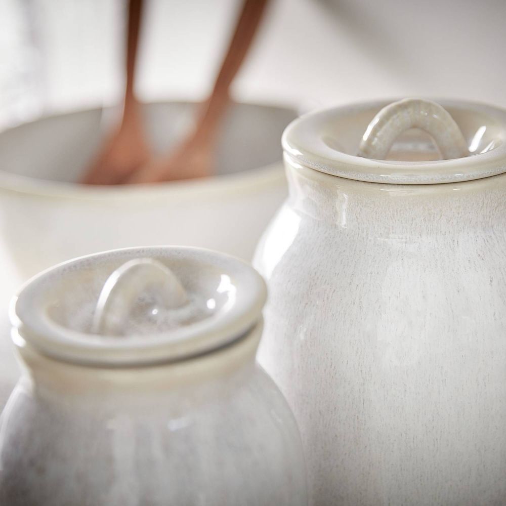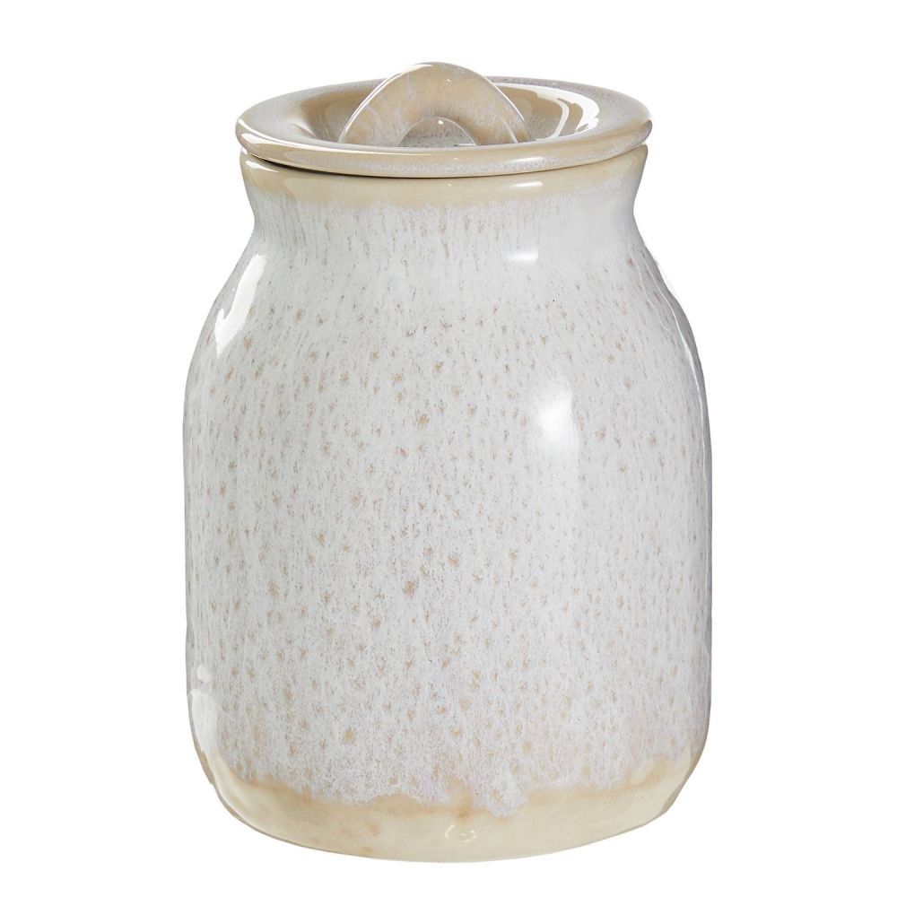 Το μικρό, κεραμικό δοχείο αποθήκευσης με καπάκι PORTIMAO σε μπεζ χρώμα, συμπληρώνει τέλεια ένα μοντέρνο, ρουστίκ στυλ κι είναι ιδανικό για να σερβίρετε ή να αποθηκεύετε αλάτι ή ζάχαρη, για παράδειγμα. Ως αξεσουάρ τραπεζιού, φέρνει μία χαλαρή, σπιτική αίσθηση και μία μεσογειακή πινελιά στο τραπέζι σας. Το αντιδραστικό σμάλτο με το πιτσιλωτό εφέ κάνει κάθε κομμάτι μοναδικό. Διατίθεται σε δύο χρώματα.