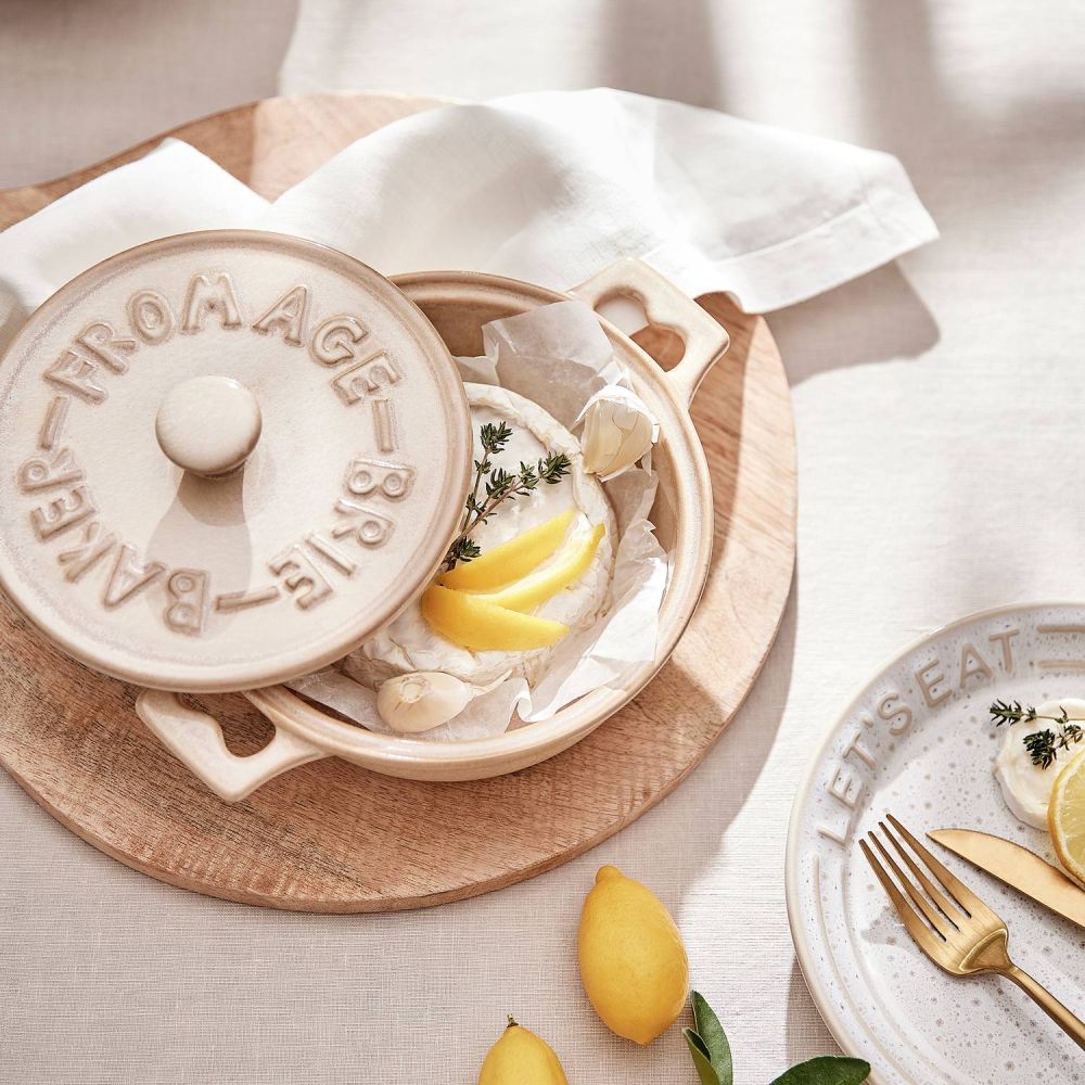 Το πυρίμαχο σκεύος PORTIMAO από κεραμικό υλικό σε μπεζ χρώμα ταιριάζει απόλυτα με το μοντέρνο ρουστίκ στυλ και είναι ιδανικό για να λιώσετε κρεμώδες τυρί στο φούρνο και στη συνέχεια να το σερβίρετε απευθείας από το ταψί. Φυσικά, αυτό το στρογγυλό σκεύος με καπάκι, είναι κατάλληλο για πλυντήριο πιάτων και μπορεί επίσης να χρησιμοποιηθεί για άλλες νόστιμες λιχουδιές. Το αντιδραστικό γλάσο με το πιτσιλωτό εφέ κάνει κάθε κομμάτι μοναδικό.