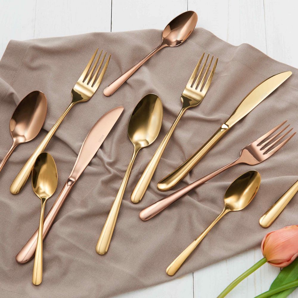 Τα κλασσικά ασημικά είναι ξεπερασμένα. Τώρα, μπορείτε να πάρετε τα λαμπερά μαχαιροπήρουνα Queen's και να φέρετε το χρώμα στο σπίτι σας με έναν πολύ σύγχρονο τρόπο. Σετ των 4, κατασκευασμένο από ανοξείδωτο χάλυβα, διατίθεται και σε άλλα χρώματα.