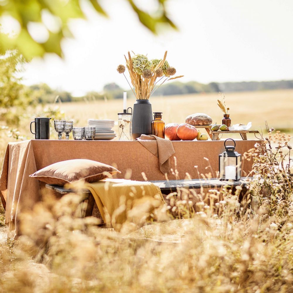 Όμορφο και απλό! Το λινό τραπεζομάντιλο Riga σε σκούρο πορτοκαλί αναδεικνύει το φυσικό υλικό και τη δομή της φυσικής ίνας. Επιτρέπει στα μαχαιροπίρουνα, στα πιάτα και στα γυαλισμένα ποτήρια να λάμπουν στο στημένο τραπέζι. Διαθέσιμα επιτραπέζια runner και πετσέτες φαγητού σε διαφορετικά χρώματα.
