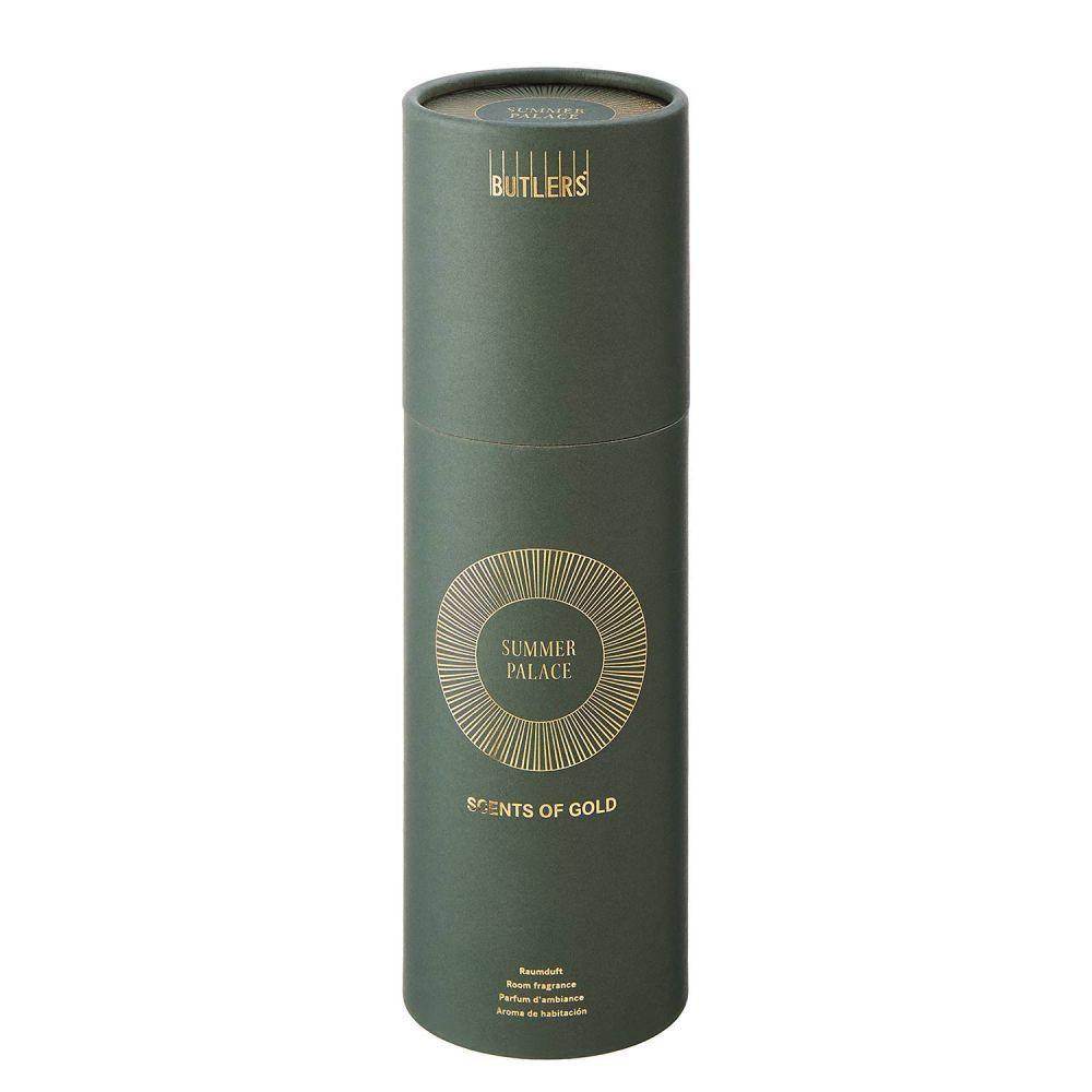 Δώστε στο σπίτι σας το δικό του χαρακτηριστικό άρωμα με το κομψό αρωματικό χώρου SCENTS OF GOLD Summer Palace. Η διακοσμητική γυάλινη φιάλη αποπνέει μια συναρπαστική αρωματική σύνθεση από αισθησιακά λουλούδια, εξωτικά φρούτα και εσπεριδοειδή, που συμπληρώνεται από διακριτικές μοσχομυριστικές νότες. Έτσι, μπορείτε να απολαμβάνετε μια νότα καλοκαιριού όλο το χρόνο στο σπίτι. Διαθέσιμη σε δύο μεγέθη, η σειρά αρωματικών χώρου SCENTS OF GOLD προσφέρει και άλλες αρωματικές εμπειρίες.
