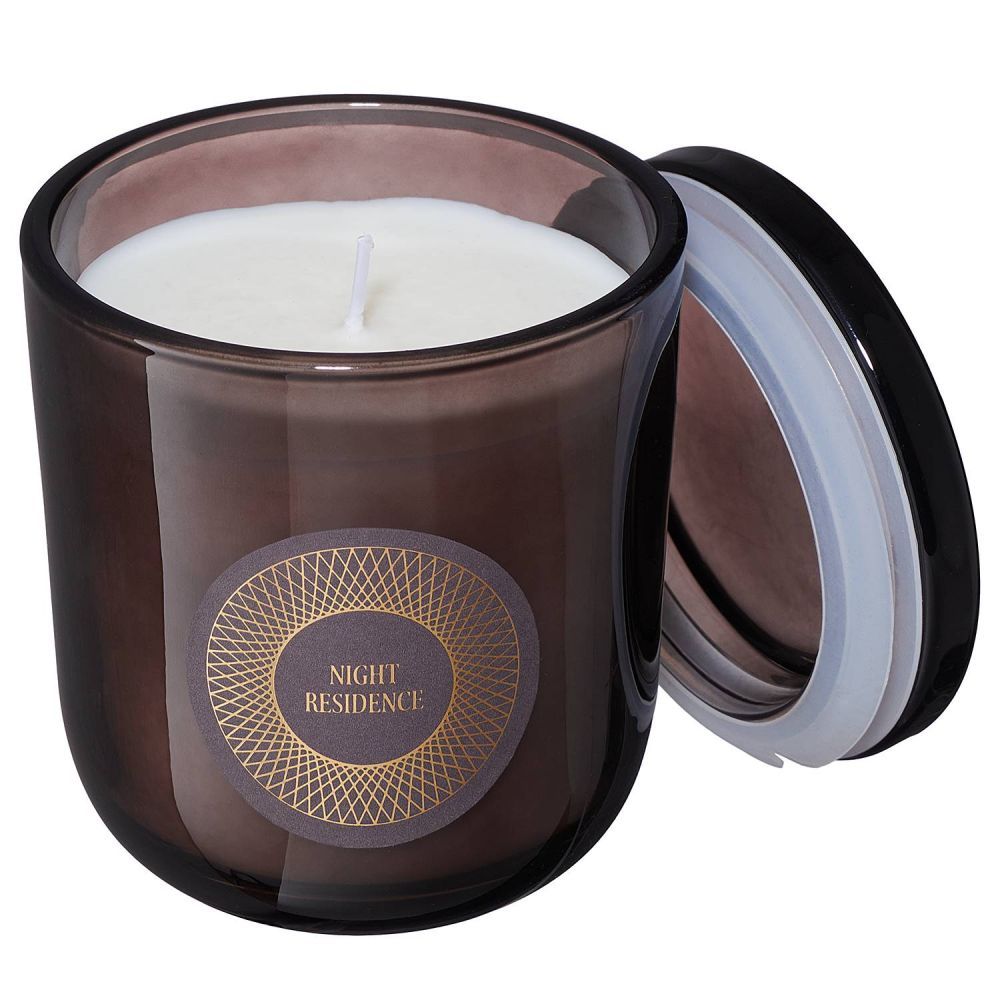 Δώστε στο σπίτι σας το δικό του χαρακτηριστικό άρωμα με το κομψό αρωματικό κερί SCENTS OF GOLD Night Residence. Το υψηλής ποιότητας αρωματικό κερί με βάση τη σόγια σε διακοσμητικό γυάλινο βάζο αποπνέει μια συναρπαστική αρωματική σύνθεση από θυμίαμα, καπνό, δέρμα, σαφράν και κεχριμπάρι, που συμπληρώνεται από ελαφριές μοσχομυριστικές νότες. Μπορείτε να απολαύσετε μια νότα χαρακτηριστικής πικάντικης γεύσης όλο το χρόνο και να αναπνέετε ακόμα πιο βαθιά όταν περνάτε χρόνο στο σπίτι σας. Διατίθενται περισσότερα αρωματικά κεριά SCENTS OF GOLD.