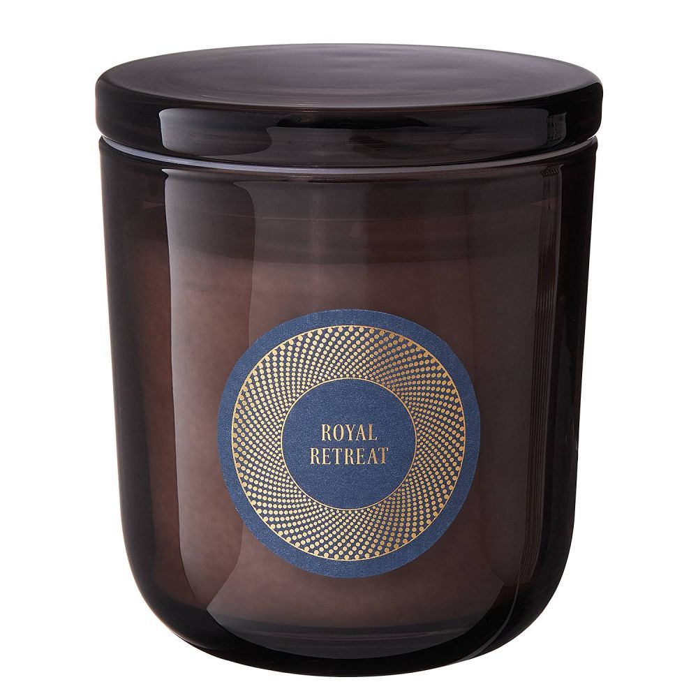 Δώστε στο σπίτι σας το δικό του χαρακτηριστικό άρωμα με το εξαιρετικό αρωματικό κερί SCENTS OF GOLD Royal Retreat. Το υψηλής ποιότητας αρωματικό κερί με βάση τη σόγια σε διακοσμητικό γυάλινο βάζο αποπνέει μια συναρπαστική αρωματική σύνθεση από μανταρίνι και ζεστό βέτιβερ, που συμπληρώνεται από κεχριμπάρι και σανταλόξυλο. Μπορείτε να απολαύσετε μία ευωδία χαλάρωσης όλο το χρόνο και να αναπνεύσετε ακόμα πιο βαθιά όταν μπορείτε να απολαύσετε χρόνο στο σπίτι σας περισσότερα αρωματικά κεριά SCENTS OF GOLD.