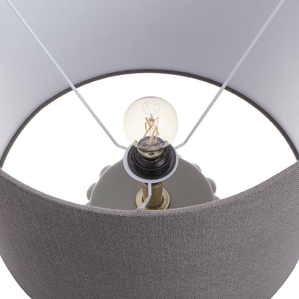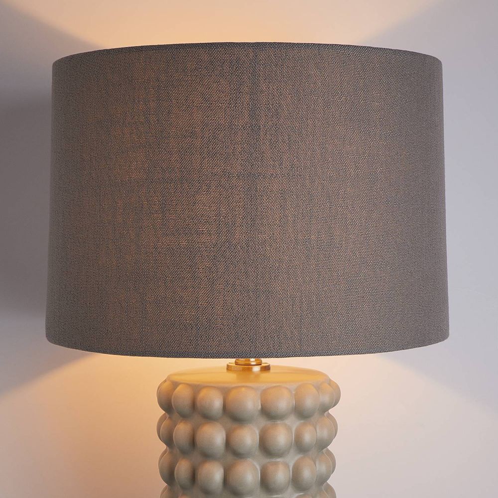 Τι επιτραπέζιο φωτιστικό! Με ύψος 73 cm, το επιτραπέζιο φωτιστικό SCULPTURE υψηλής ποιότητας δείχνει πραγματικό εντυπωσιακό και ταβάει τα βλέμματα με το σχεδιασμό του. Η κεραμική βάση σε μοντέρνο στυλ φυσαλίδας και το αντίστοιχης απόχρωσης καπέλο με ύφασμα συνθέτουν έναν υπέροχο συνδυασμό, τελειοποιημένο με χρυσές πινελιές. Αυτό το επιτραπέζιο φωτιστικό είναι ένα εκλεπτυσμένο εντυπωσιακό στοιχείο σε κάθε σπίτι που εκτιμά το στυλ με μια πινελιά υπερβολής.