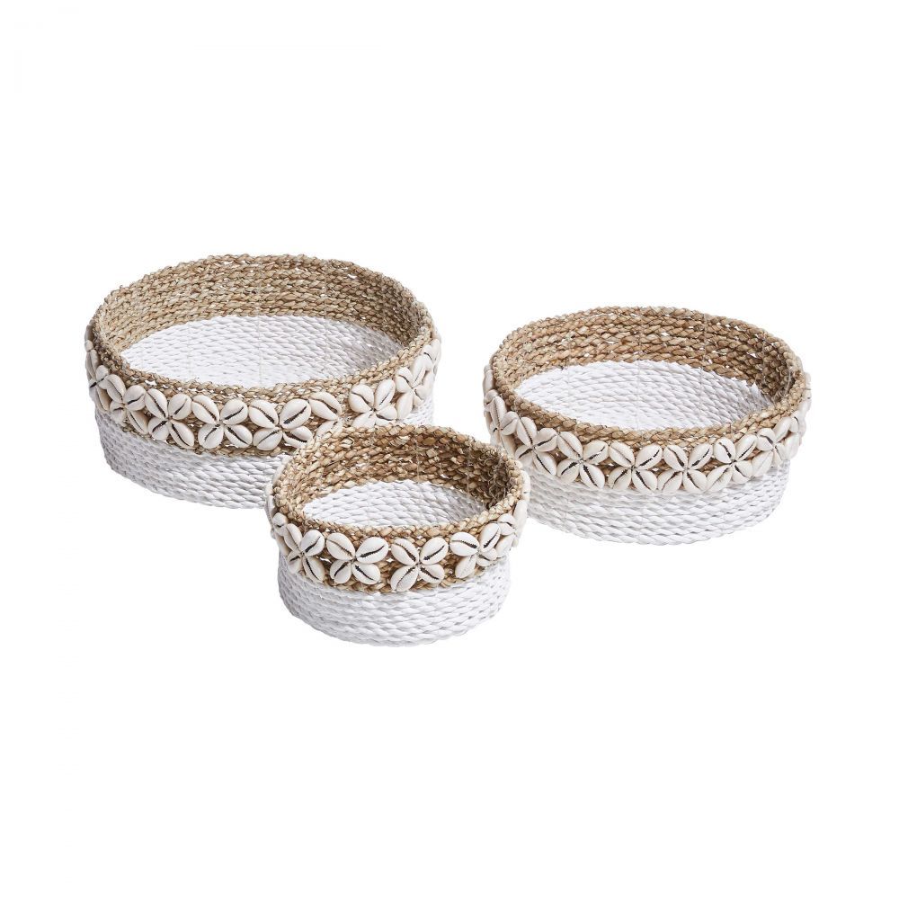 Αίσθηση παραλίας στο σπίτι σας! Με το ψάθινο καλάθι Seashell με αληθινά κοχύλια, έχετε αμέσως ένα όμορφο θαλασσινό κόσμημα για το σπίτι σας. Τοποθετήστε το καλοκαιρινό ψάθινο μπολ σε φυσικό και λευκό χρώμα ως διακόσμηση στο τραπέζι ή χρησιμοποιήστε το για την αποθήκευση μικροαντικειμένων, για παράδειγμα στο διάδρομο, στο μπάνιο ή στην κρεβατοκάμαρα. Με το φυσικό υλικό pandanus, που χρησιμοποιείται παραδοσιακά για την ύφανση καλαθιών. Διατίθεται σε μεγέθη L, M και S.