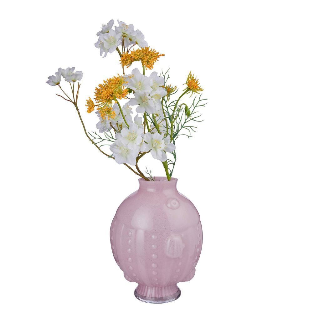 Γοητευτικά στρογγυλεμένο με διακριτικό σχέδιο ψαριού: Θα ερωτευτείτε το ροζ γυάλινο βάζο SEASIDE με την πρώτη ματιά. Αυτό το μοναδικό βάζο εναρμονίζεται τέλεια με τη ναυτική διακόσμηση και προσθέτει μια παιχνιδιάρικη πινελιά στο τραπέζι ή τη διακόσμηση του σπιτιού σας.