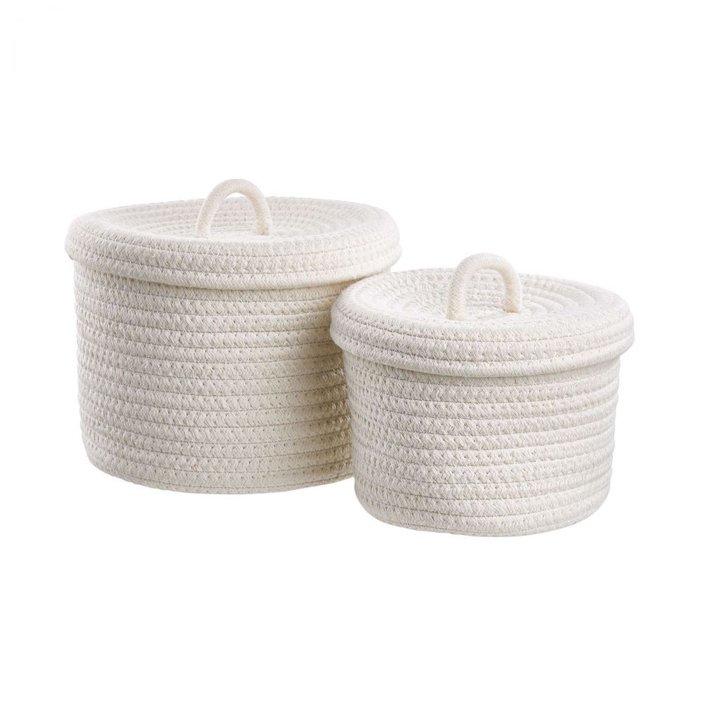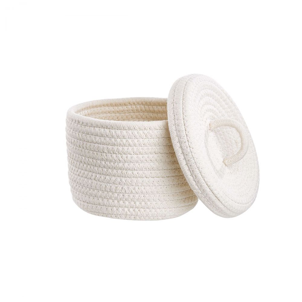 καλάθι στρογγυλό με καπάκι σε κρεμ χρώμα, S