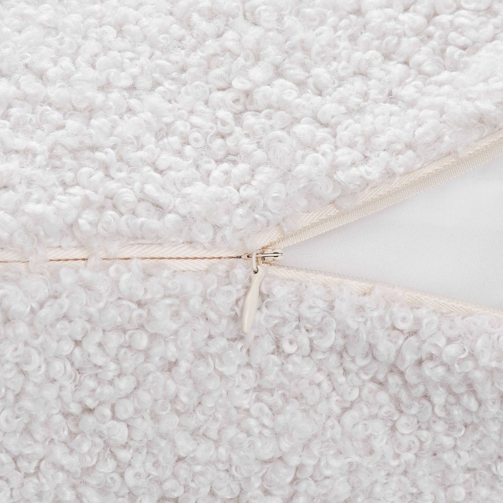 Σε κάνει να θέλεις να κλείσεις τα μάτια και να μετρήσεις προβατάκια! Το λευκό μαξιλάρι SHETLAND με ιδιαίτερο κάλυμμα σε σχέδιο που μοιάζει με μπουκλέ, θυμίζει ζεστή γούνα και προσφέρει μια επιπλέον δόση θαλπωρής στον καναπέ ή το κρεβάτι. Με φερμουάρ και με γέμιση 100% πολυεστέρα.