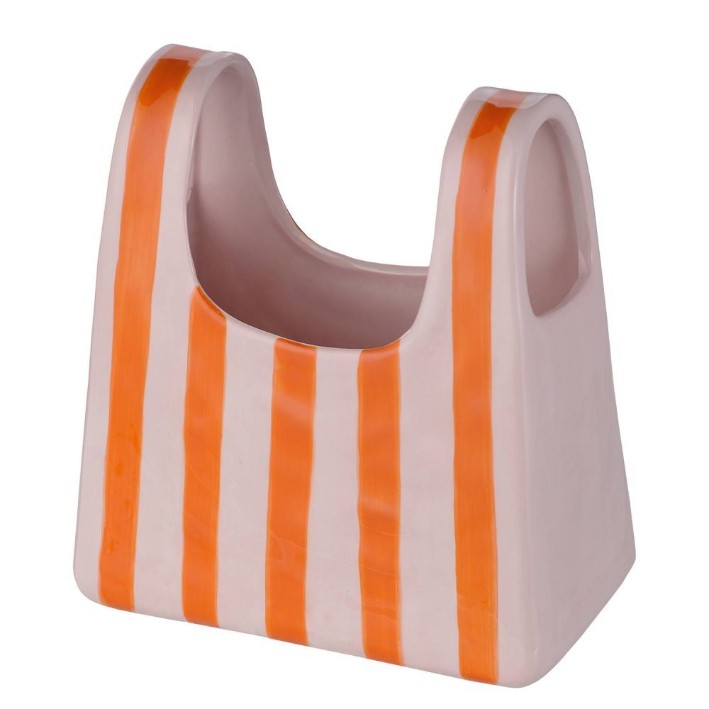 SHOPPING BAG - βάζο κεραμικό σε σχήμα τσάντας, ριγέ