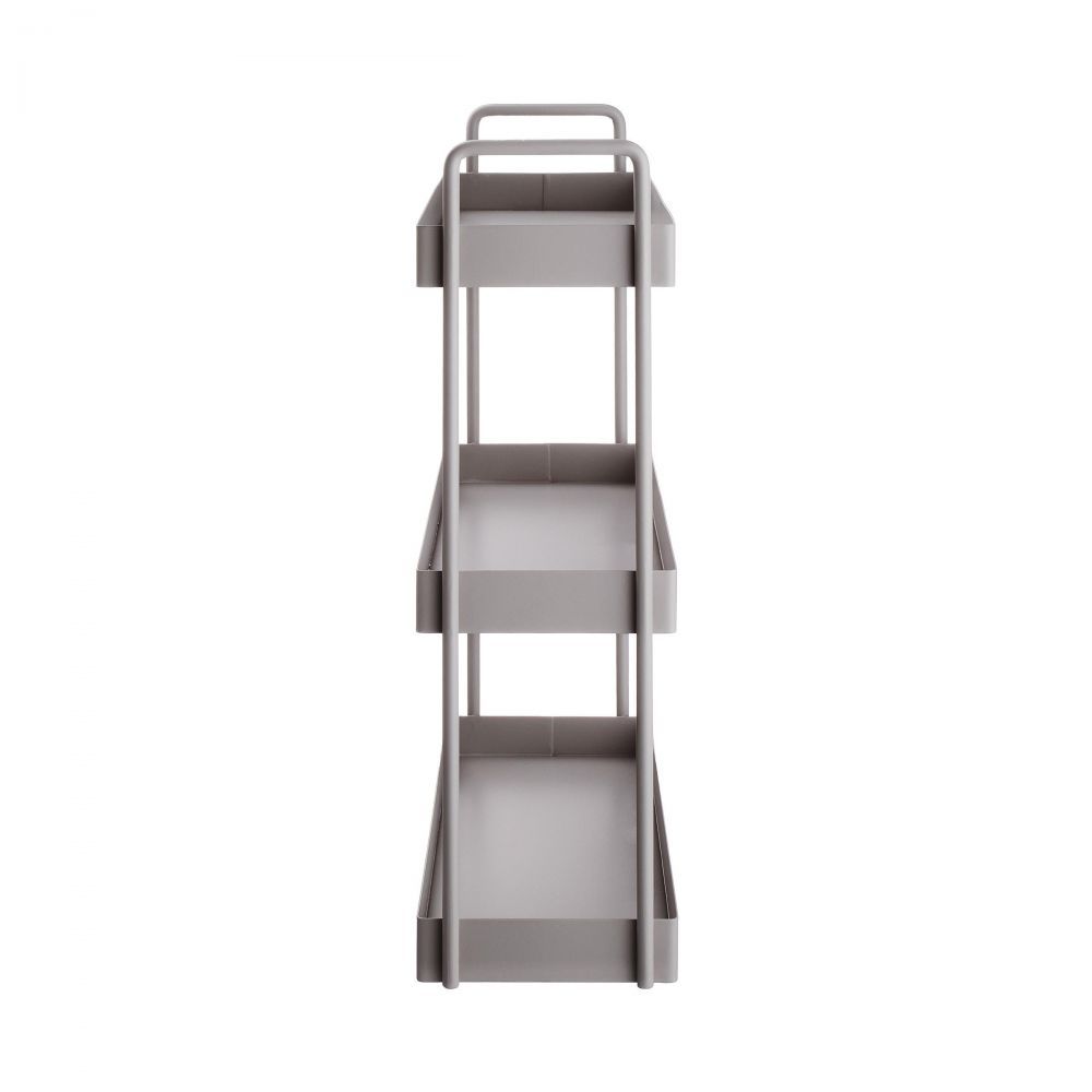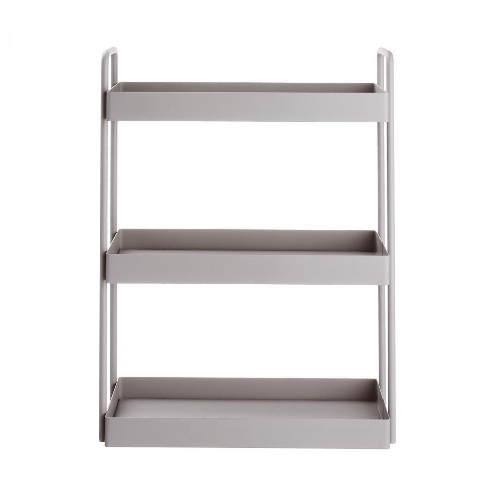 Δείτε την οργάνωση με μία φρέσκια ματιά με τη ραφιέρα SIDELINE με 3 ράφια. Η ραφιέρα σε ίσια γραμμή από συμπαγές μέταλλο ταιριάζει σχεδόν παντού με τις συμπαγείς διαστάσεις της και προσφέρει πολύτιμο αποθηκευτικό χώρο για αντικείμενα όπως κουτάκια, καλλυντικά ή είδη γραφείου. Στην καθημερινή ζωή, η επιφάνειά της με βαφή πούδρας αποδεικνύεται στιβαρή και ανθεκτική.Για να την καθαρίσετε, απλώς ξεσκονίστε ή σκουπίστε με ένα μαλακό πανί.