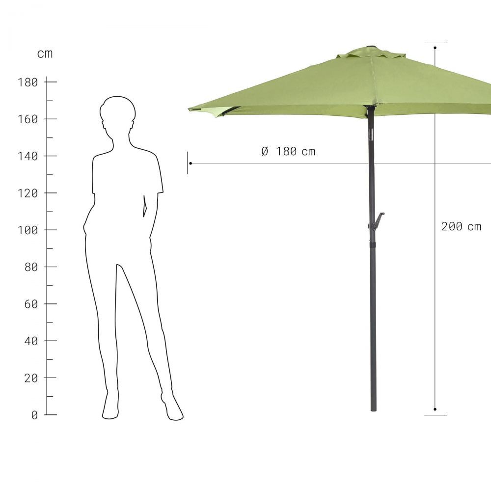 Ανοίξτε την υψηλής ποιότητας ομπρέλα Siesta με κάλυμμα πολυεστέρα (διάμετρος 1,8 m, πρότυπο UV 801) μόλις ο ήλιος είναι ψηλά στον ουρανό. Το μόνο που χρειάζεστε τώρα είναι κάτι άνετο να καθίσετε ή να ξαπλώσετε και μπορείτε να απολαύσετε μια μικρή, χαλαρωτική σιέστα στη σκιά.