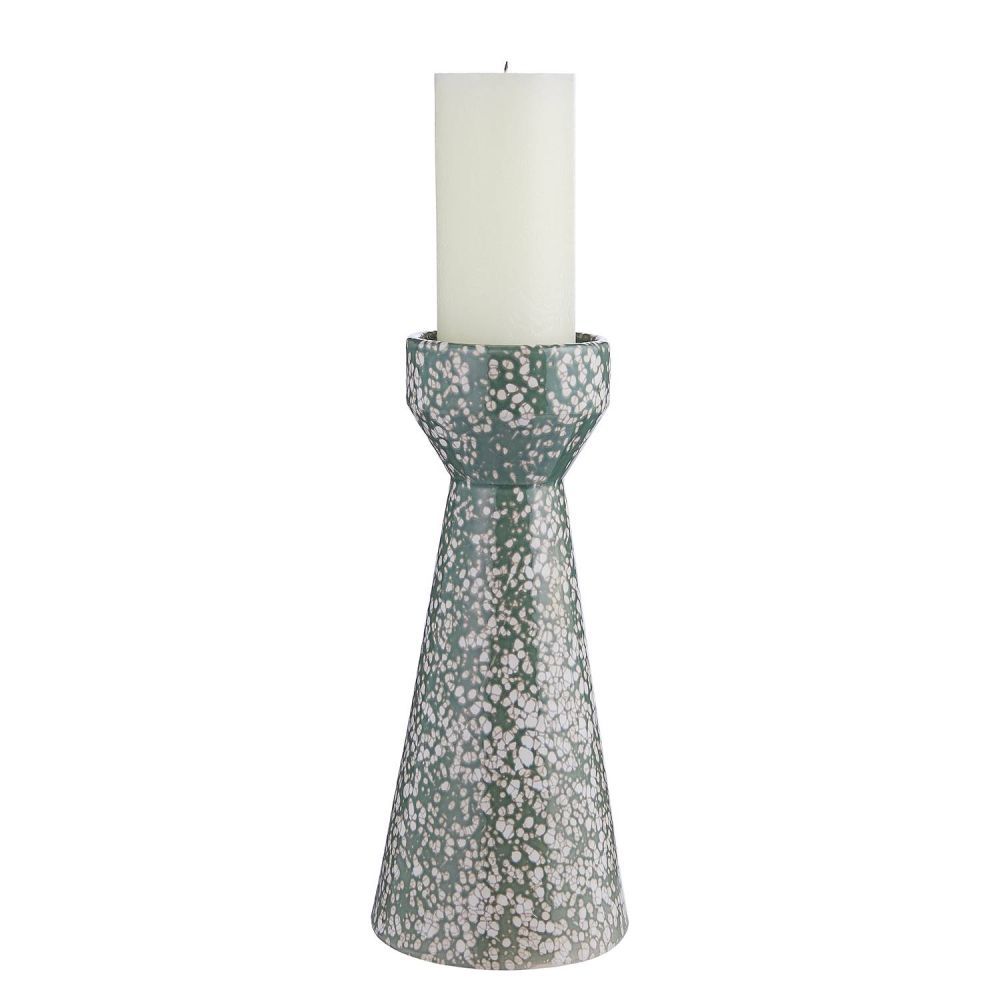 Εντυπωσιακό σχήμα, πιτσιλωτή εμφάνιση: Το κηροπήγιο SPECKLE ύψους 30 cm, σε χρώμα πράσινου φασκόμηλου, θα κάνει εντύπωση στο σπίτι σας. Χρησιμοποιήστε το κεραμικό κηροπήγιο για να προσθέσετε την τελική πινελιά σε απλά διακοσμημένα τραπέζια ή τοποθετήστε το μόνο του ως αυτόνομο κομμάτι σε μια συρταριέρα ή ένα βοηθητικό τραπέζι.