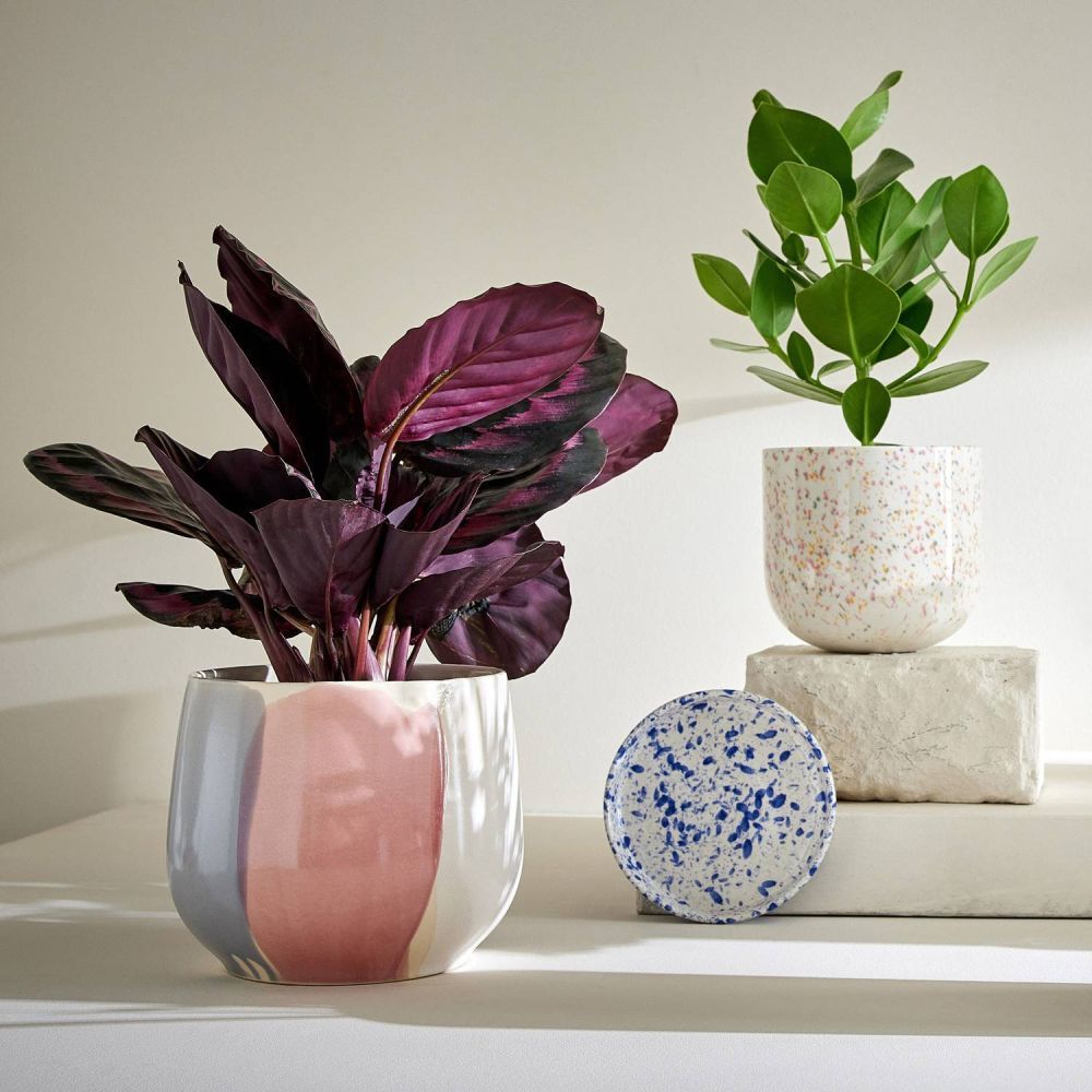 Σαν χαρούμενες φακίδες, τα χρωματιστα στίγματα είναι διάσπαρτα σε όλη την επιφάνεια του κασπό SPOT. Αυτό το όμορφο πήλινο κασπό μπορεί εύκολα να συνδυαστεί με οποιοδήποτε είδος φυτού και εναρμονίζεται ιδιαίτερα με φωτεινούς και φυσικούς εσωτερικούς χώρους. Διατίθεται σε δύο μεγέθη για να ταιριάζει με τα φυτά ή τις γλάστρες σας.