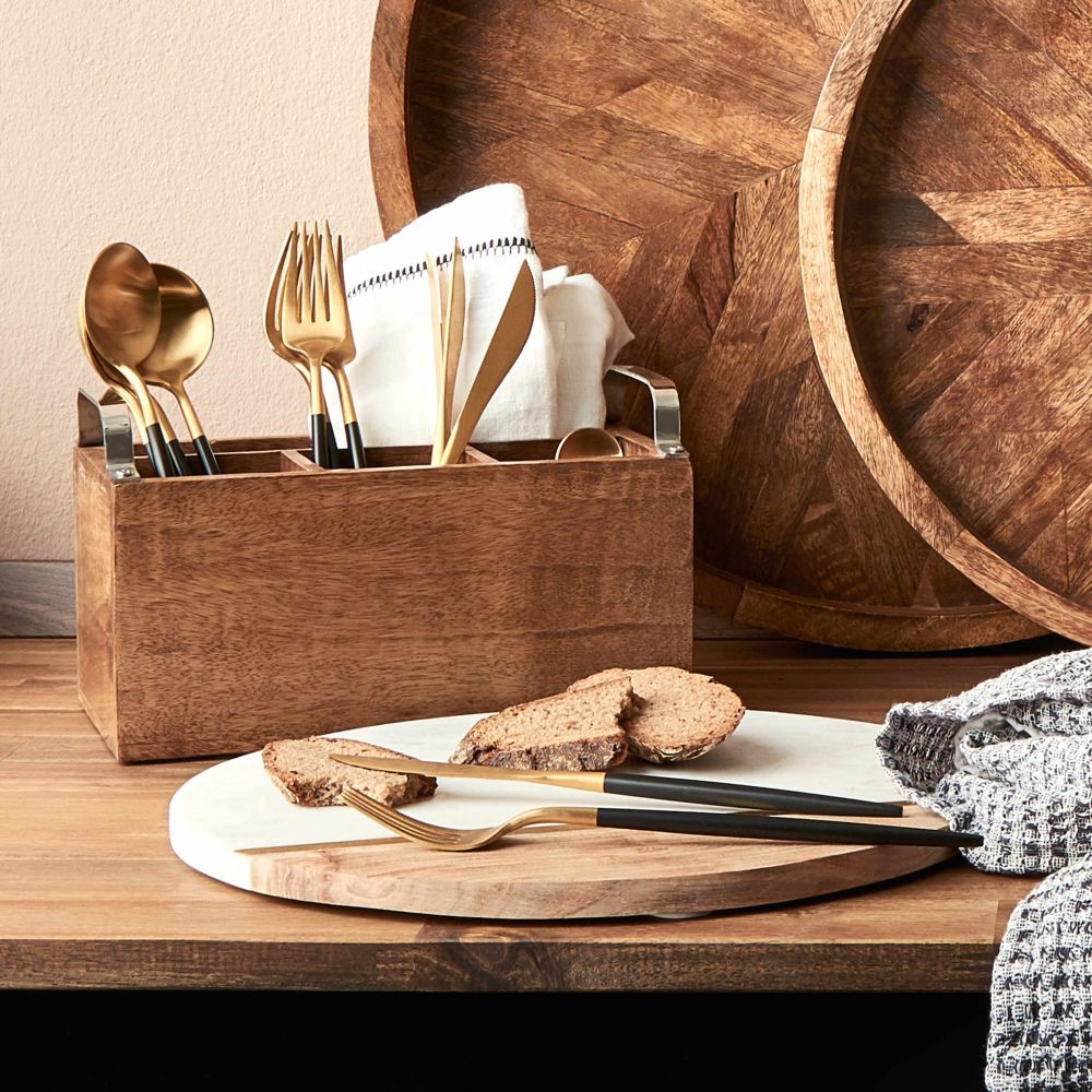 Η ιδιαίτερη θήκη για μαχαιροπήρουνα STANDARD SUPPLY αποδεικνύεται ένα σημαντικό εργαλείο για την παρουσίαση και την διακόσμηση του τραπέζιου. Το ξύλο μάνγκο με την ιδιαίτερη υφή αναδεικνύει τα χρώματα και δίνει ένα εξωτικό look. Επιπλέον αξεσουάρ από ξύλο mango διατίθενται για το στήσιμο του τραπεζιού και τη διακόσμηση του σπιτιού.