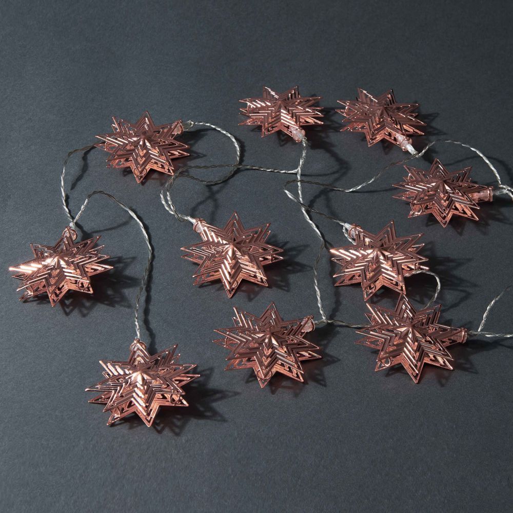STELLA - φωτεινή αλυσίδα 10 αστεριών, ροζ χρυσό, λειτουργεί και με USB