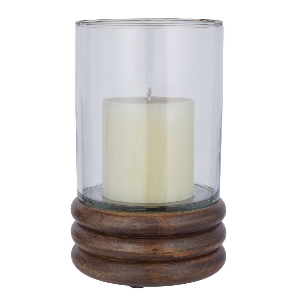 κηροπήγιο γυάλινο με ξύλινη βάση 25cm