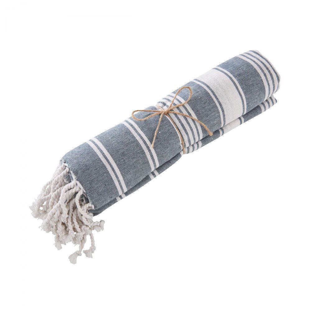 Εάν κατευθυνθείτε προς την παραλία ή για ένα πικνίκ, εξοικονομήστε χώρο στην τσάντα της παραλίας με την πετρόλ βαμβακερή πετσέτα hammam Surfside. Μπορείτε επίσης να τη χρησιμοποιήσετε και ως κάλυμμα ή ως διακοσμητικό ριχτάρι στο σπίτι σας. Άλλα διαθέσιμα χρώματα.