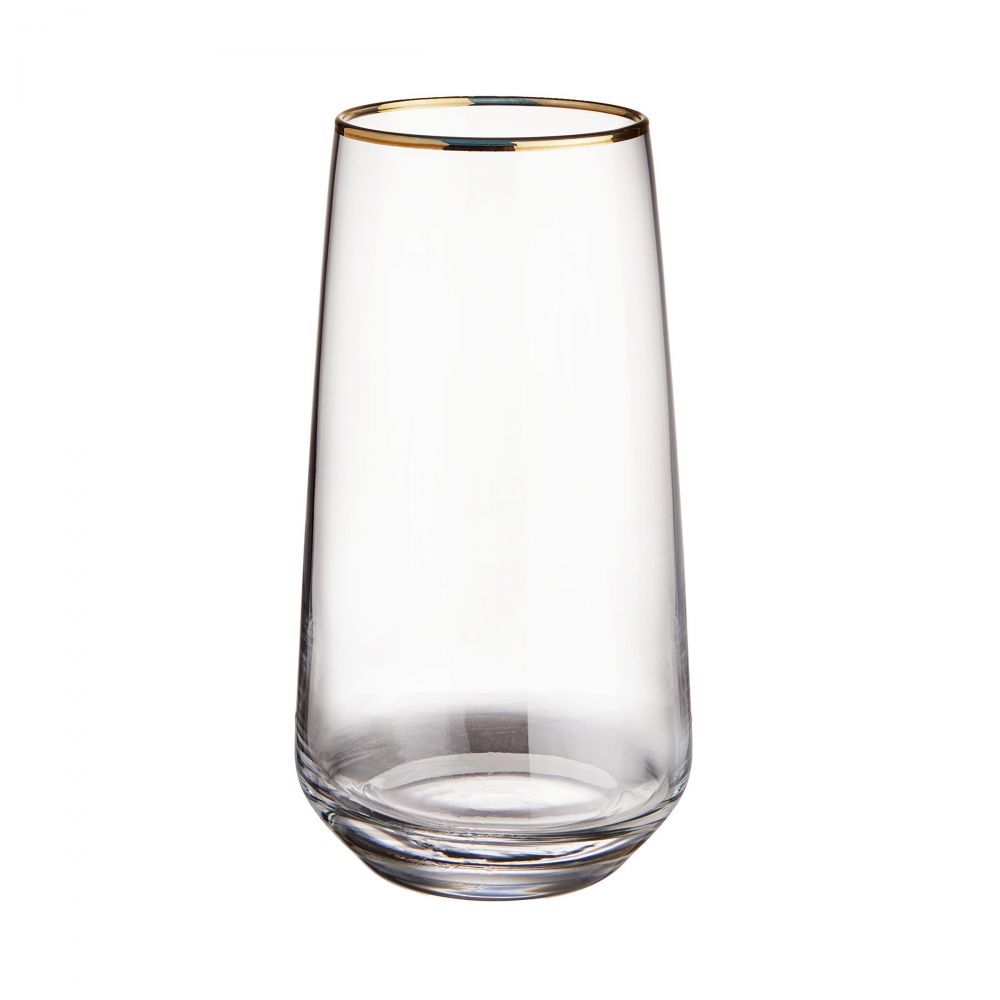 Το μοντέρνο ποτήρι για ποτό TOUCH OF GOLD 480 ml, παρέχει αρκετό χώρο για το ποτό αλλά και τα παγάκια. Εσείς και οι καλεσμένοι σας θα απολαύσετε το αγαπημένο σας ποτό κατά τη διάρκεια των γευμάτων και των εορταστικών εκδηλώσεων. Αντίστοιχα ποτήρια νερού, διαθέσιμα.