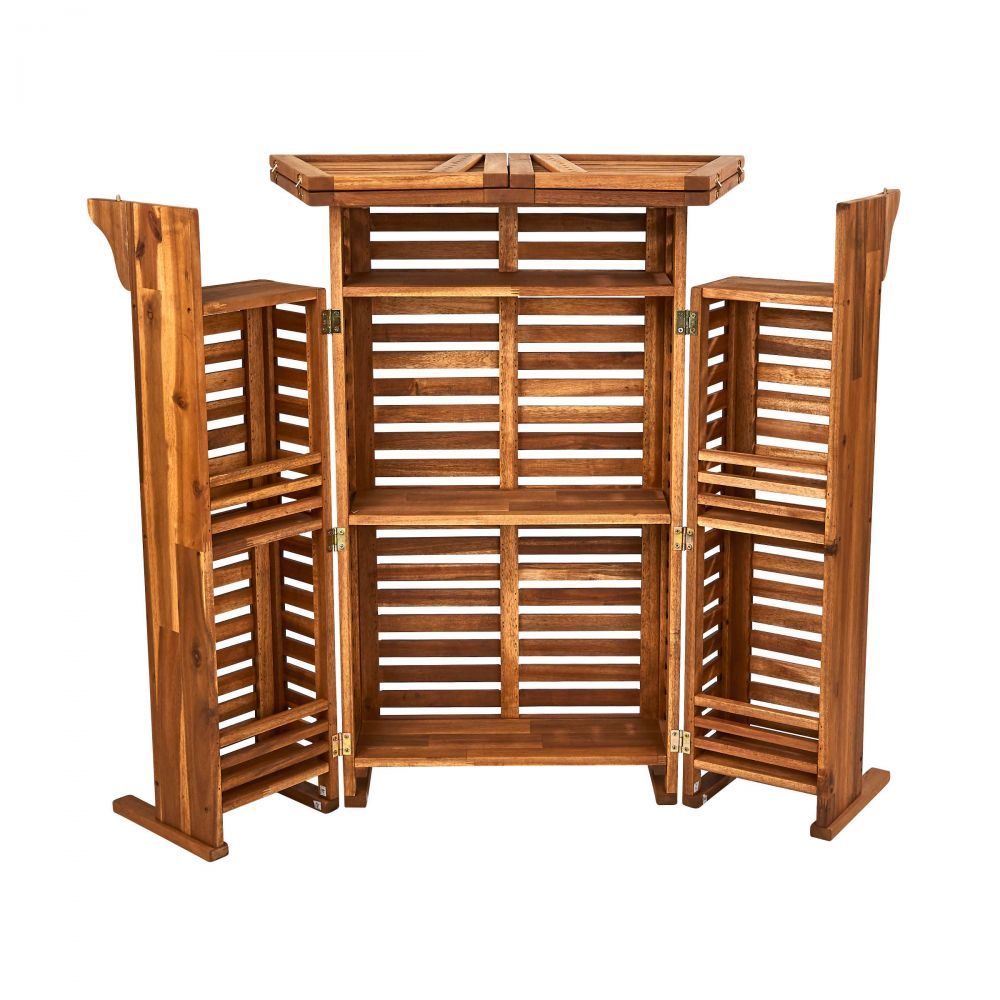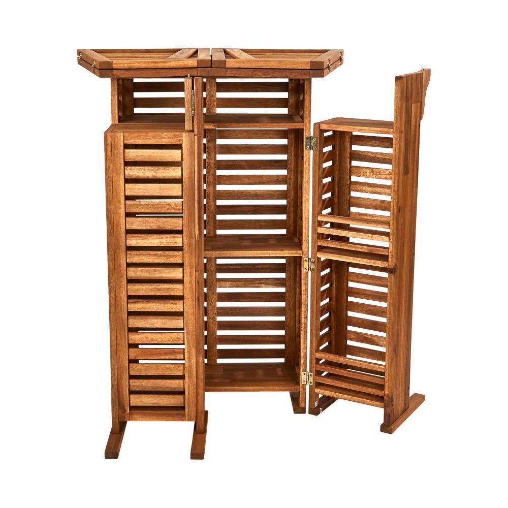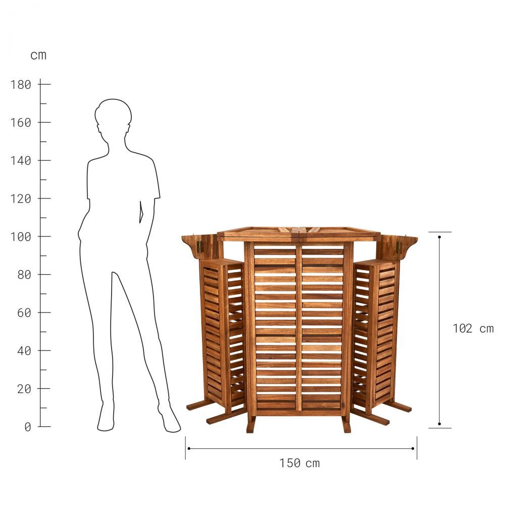 Με το αδιάβροχο μπαρ κατασκευασμένο από FSC-πιστοποιημένο ξύλο ακακίας, είστε έτοιμοι για το επόμενο πάρτι στον κήπο. Απλά ανοίξτε το μπαρ και τα ποτήρια, τα μπουκάλια, τα shakers & Co. είναι σε σειρά και άμεσα διαθέσιμα για χρήση. Δείτε την καθημερινή λιακάδα ως μια ευκαιρία να προσκαλέσετε φίλους στο σπίτι σας και να γιορτάσετε αυθόρμητα. Σκαμπό με δυνατότητα περιστροφής είναι διαθέσιμα και ως έπιπλα κήπου.