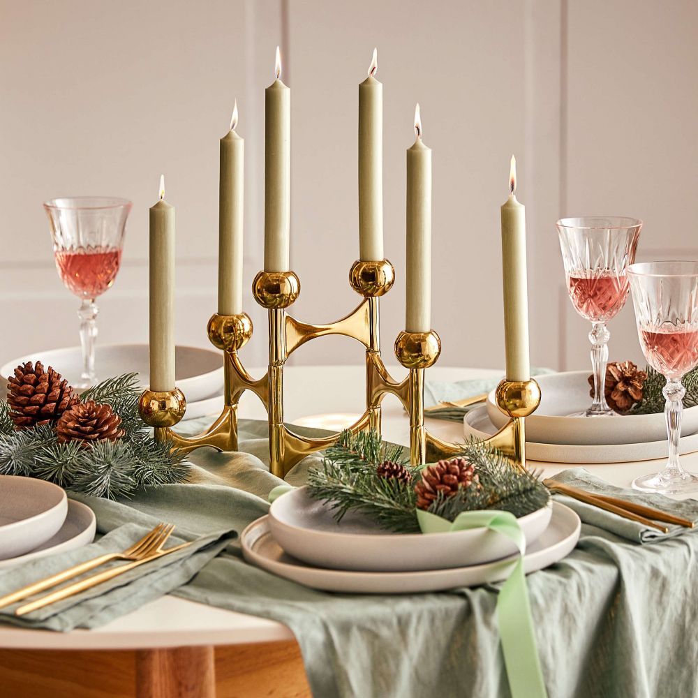 Σήμερα έτσι, αύριο αλλιώς: Το πτυσσόμενο κηροπήγιο VARIATION από αλουμίνιο μπορεί να διαμορφωθεί με πολλούς τρόπους - και να διπλωθεί για να εξοικονομήσει χώρο για αποθήκευση. Μπορεί να διακοσμηθεί με συνολικά 6 κεριά, έτσι ώστε τα γιορτινά τραπέζια να λούζονται με λαμπερό φως. Ή μπορείτε να χρησιμοποιήσετε το μοντέρνο κηροπήγιο ως εντυπωσιακό στοιχείο πάνω σε μια συρταριέρα ή σε ένα βοηθητικό τραπέζι. Διατίθεται σε χρυσό και ασημί χρώμα για να ταιριάζει με τη διακόσμηση και την επίπλωσή σας.