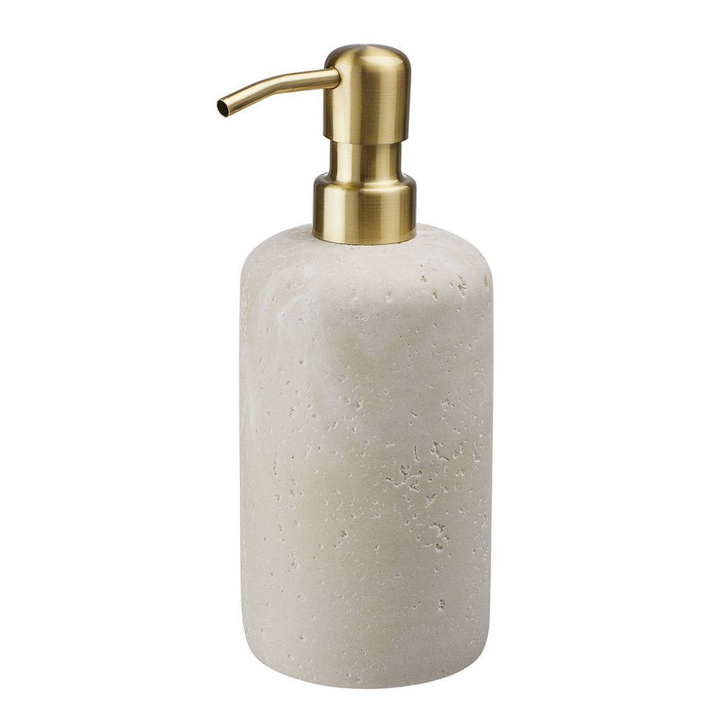 Ιδανικό για το μπάνιο σας με φυσική, εκλεπτυσμένη εμφάνιση: το δοχείο για υγρό σαπούνι της σειράς VERDON από πολυρεζίνη σε ανοιχτό μπεζ θυμίζει ψαμμίτη με την ανομοιόμορφη, οδοντωτή επιφάνεια του. Το μινιμαλιστικό, μοντέρνο σχήμα τονίζει όμορφα το υλικό, έτσι ώστε το δοχείο υγρού σαπουνιού,η βάση σαπουνιού, το ποτήρι οδοντόβουρτσας και το δοχείο αποθήκευσης από τη σειρά VERDON να ταιριάξουν απόλυτα στην διακόσμηση του μπάνιου σας.