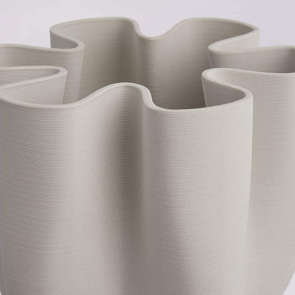 Το σύγχρονο τυπωμένο βάζο VISION 3D στην πραγματικότητα προέρχεται από έναν εκτυπωτή. Η πορσελάνη εφαρμόζεται στρώση-στρώση μέχρι να δημιουργηθεί το λευκό βάζο με το φουτουριστικό σχέδιο. Αυτή η ειδική διαδικασία κατασκευής κάνει το βάζο ένα πραγματικό statement κομμάτι για το σπίτι σας.