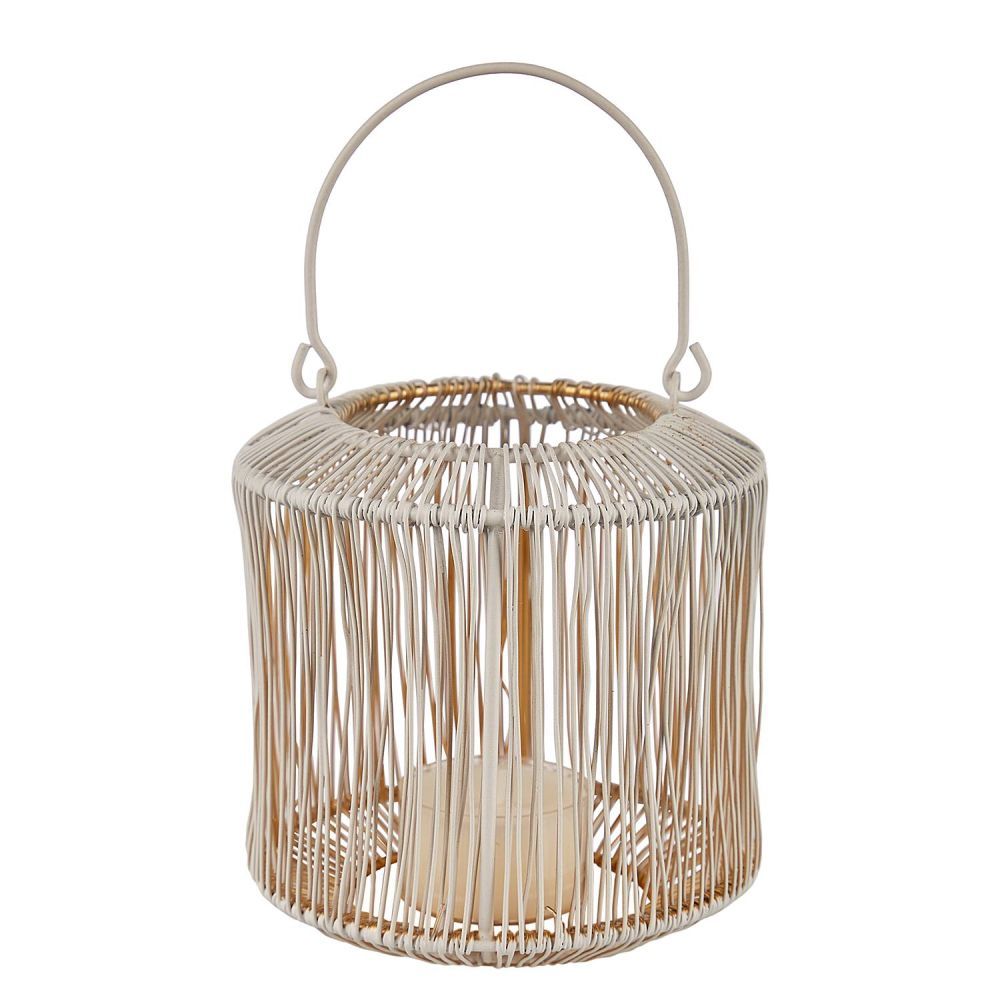 Αυτό το μοναδικό σιδερένιο φανάρι τραβάει πραγματικά την προσοχή. Το μοντέρνο σχήμα, η ιδιαίτερη δομή και το λαμπερό εσωτερικό δημιουργούν ένα όμορφο αλλά διακριτικό παιχνίδισμα φωτός κεριών. Μπορείτε να το τοποθετήσετε σε ένα τραπέζι, σε μια συρταριέρα ή να το πάρετε μαζί σας στη βεράντα.